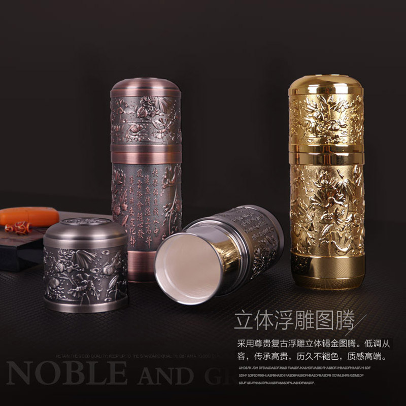立体浮雕纯银保温杯