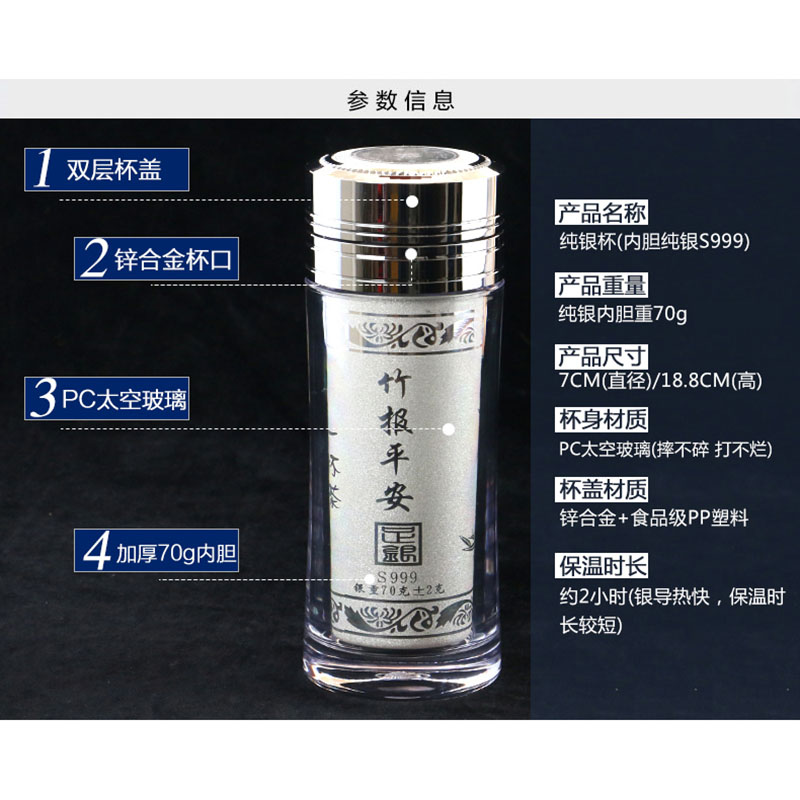 999纯银内胆保健升级保温杯