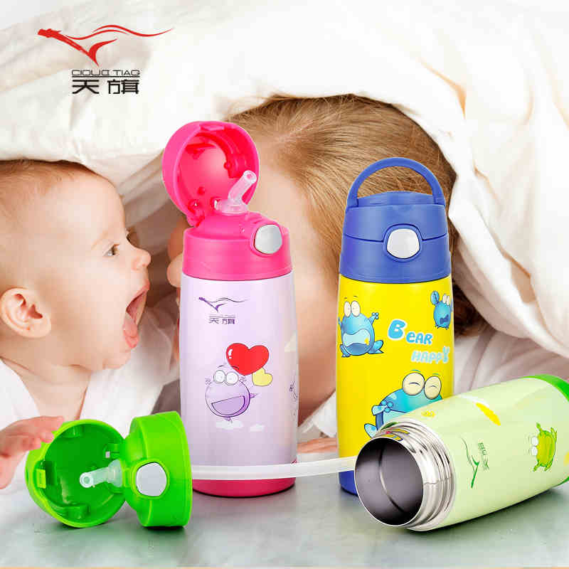 不锈钢带吸管儿童保温杯