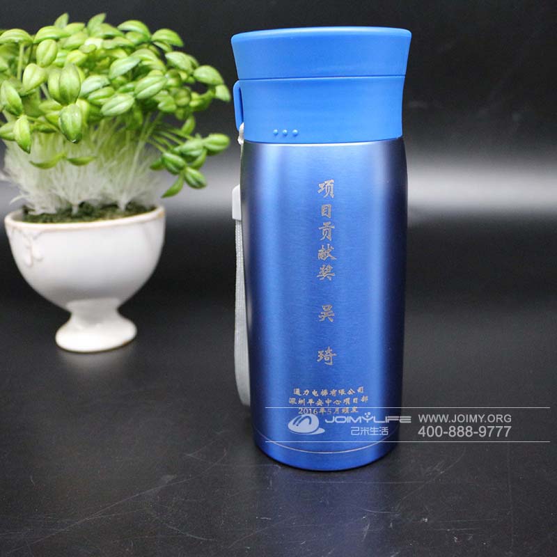 • 产品参数: 杯子:17.7*6.7,蓝色,表面激光刻字