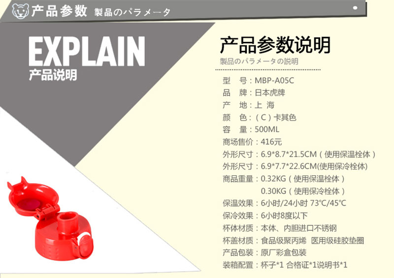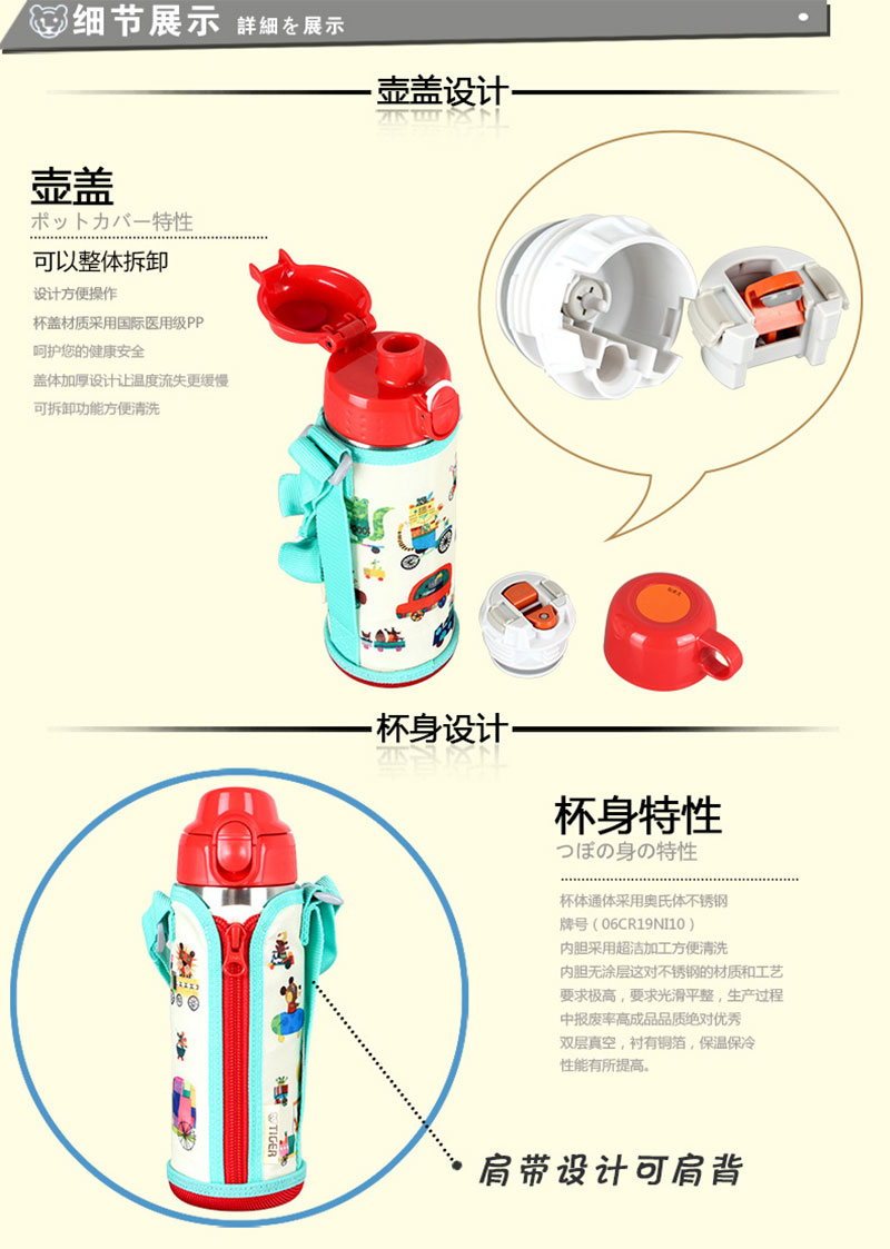Tiger不锈钢儿童虎牌保温杯MBP-A05C