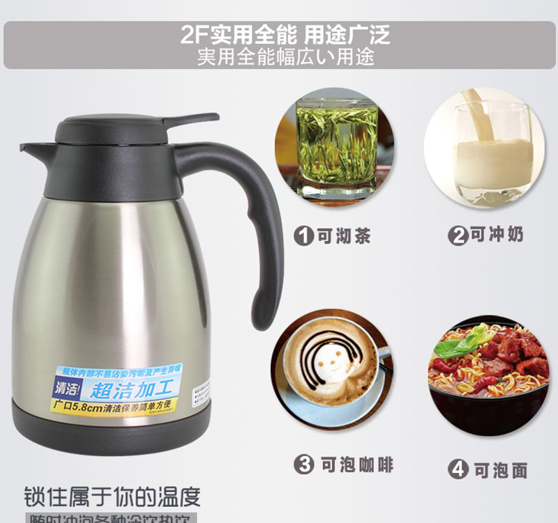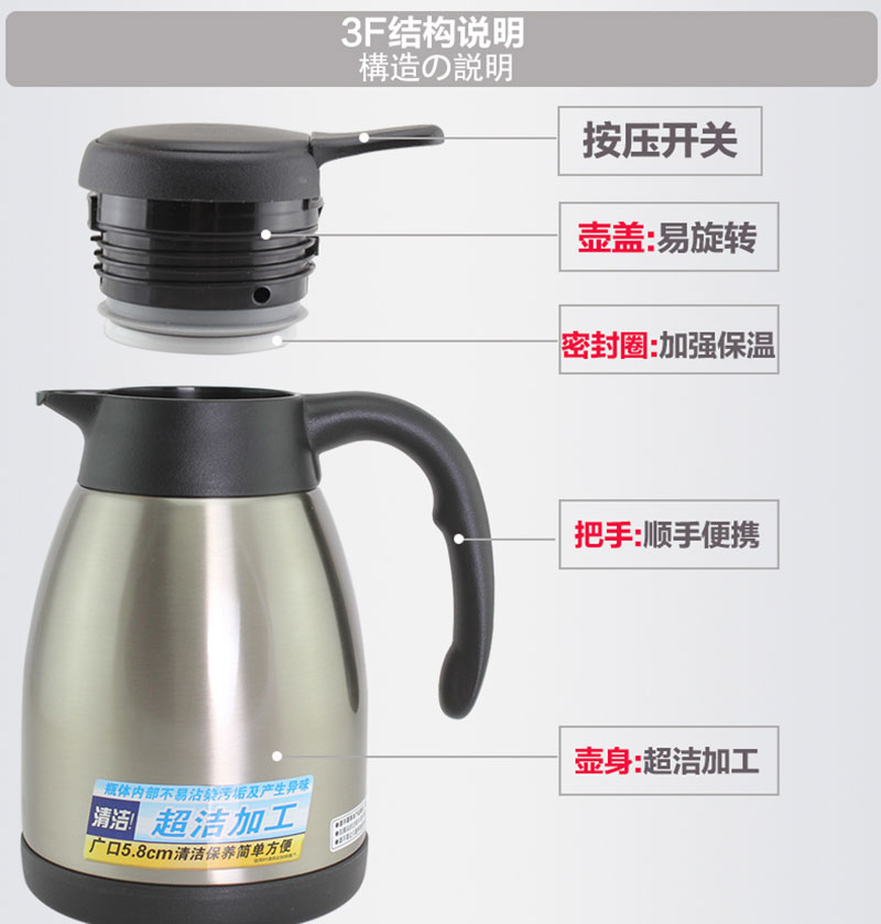 虎牌桌面壶便携式热水瓶2L不锈钢保温瓶PWL-A20C
