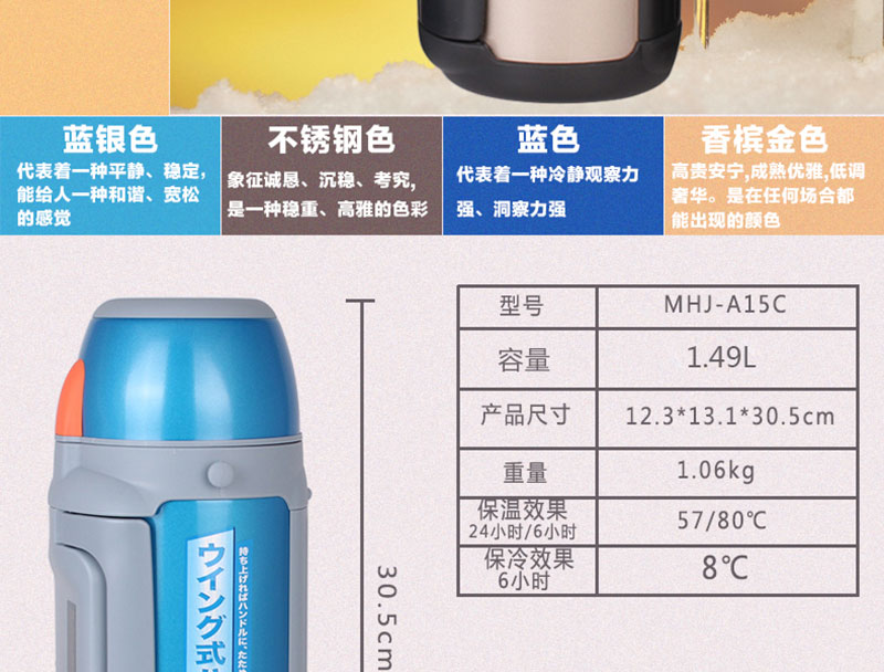 • 虎牌保温壶MJB-A150男女士户外旅行壶