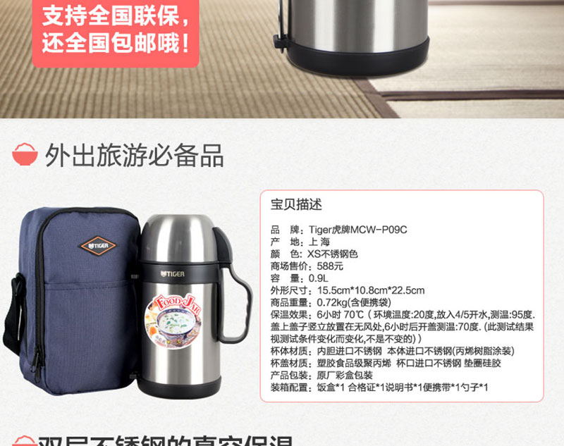 Tiger虎牌饭盒日式焖烧杯不锈钢保温便当盒焖烧壶