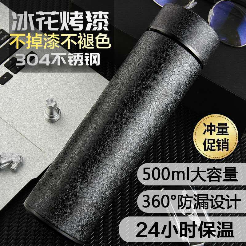 新款2019冰花漆商务保温杯定制 内304不锈钢真空时尚水杯多少钱 促销礼品保温杯定制批发