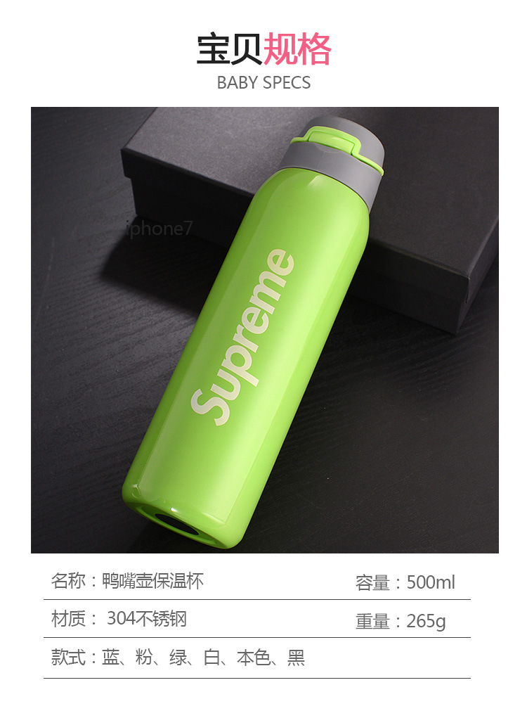 户外休闲运动水壶创意便携鸭嘴吸管水杯不锈钢真空保温杯定制logo