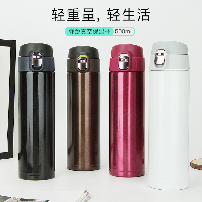 三代弹跳保温杯男女商务车载杯休闲随手直身杯定制礼品水杯子