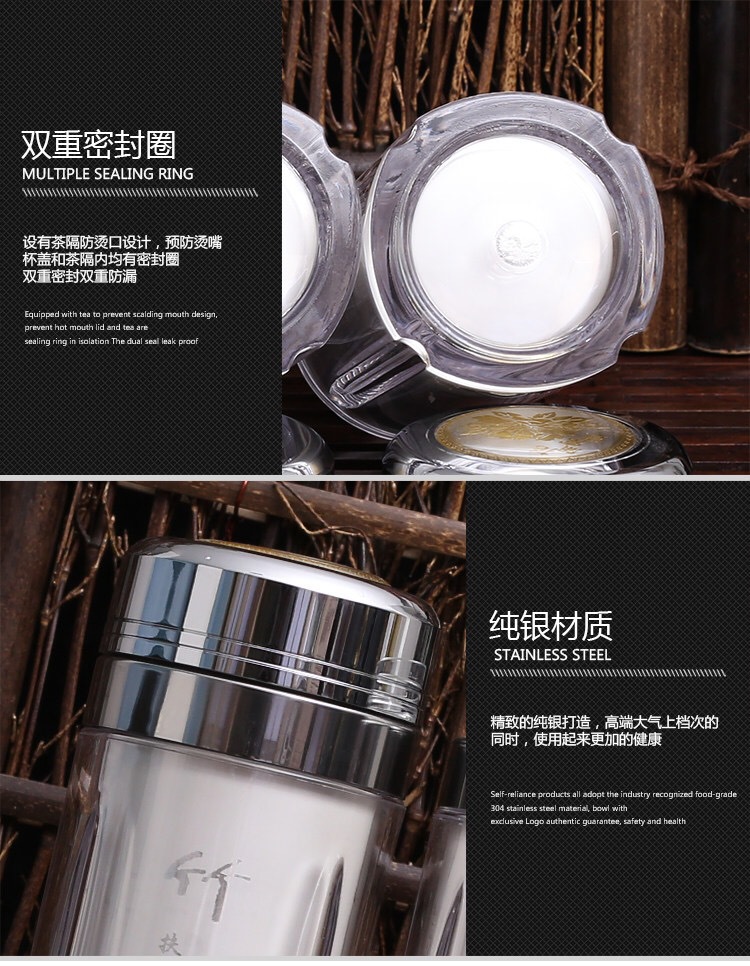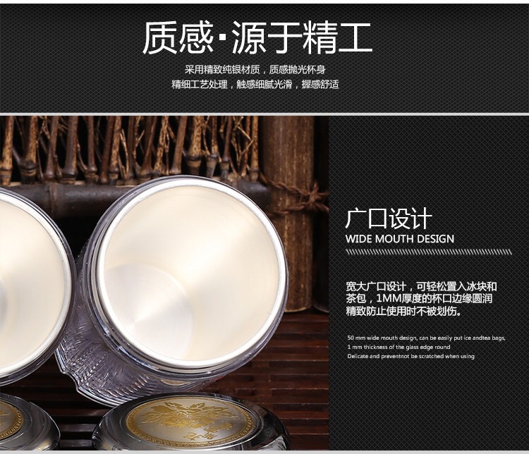 S999纯银定制纯银茶杯保健杯纯银内胆口杯办公保温杯子制品礼品杯