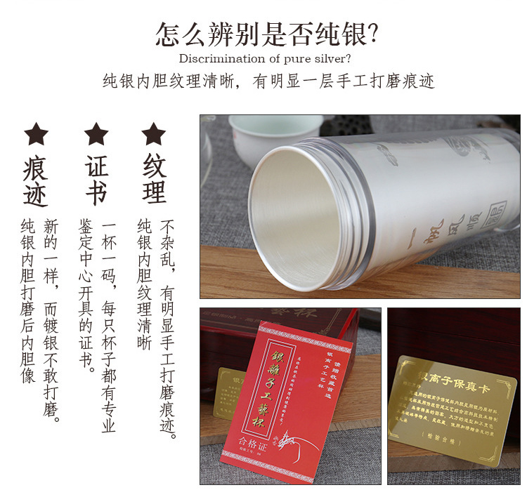 内外纯银180g养生礼品杯 纯银保温杯定制批发