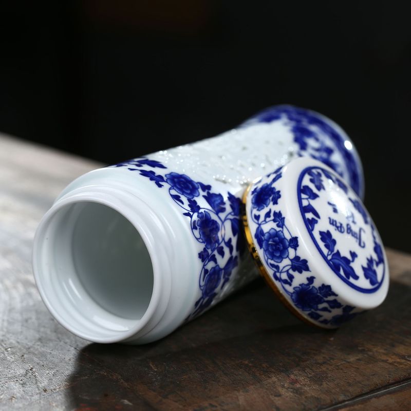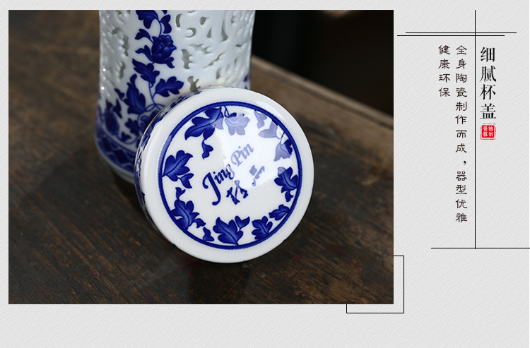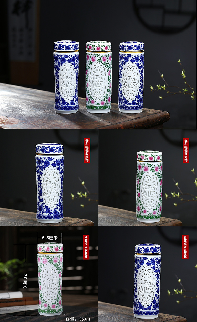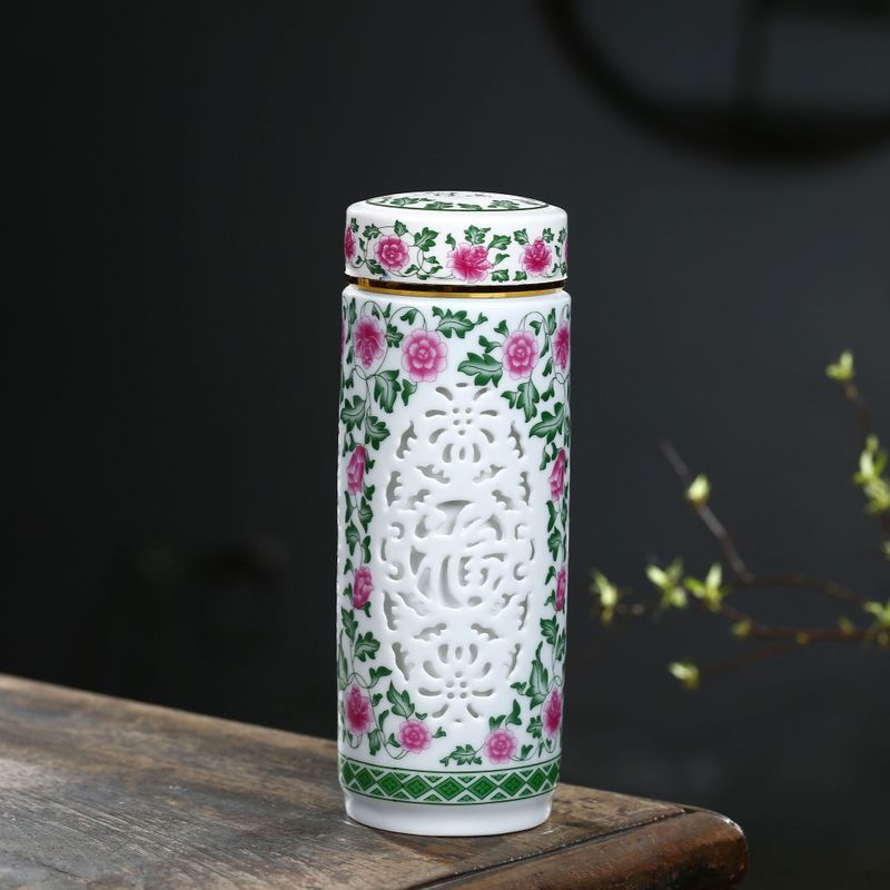 陶瓷保温杯带盖双层内胆镂空玲珑骨瓷随手杯车载养生茶杯礼品定制