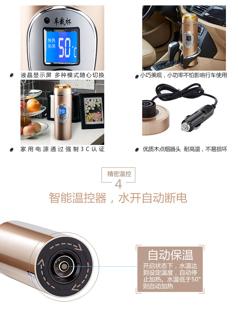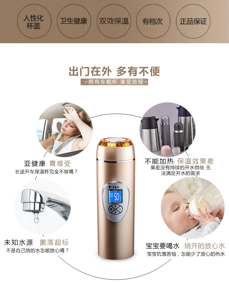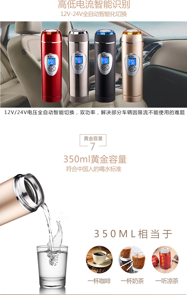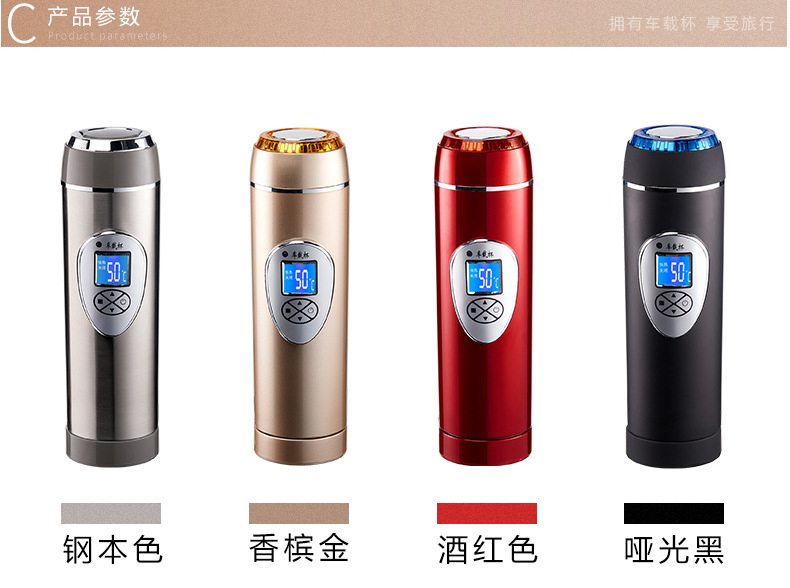 旅行车载加热杯智能电热水杯车用热水器烧水壶