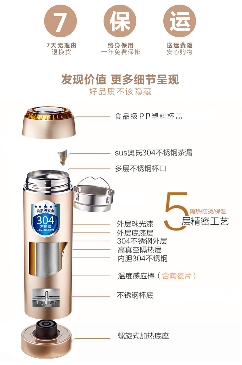 智能车载电热杯保温杯旅行汽车用加热水杯壶电