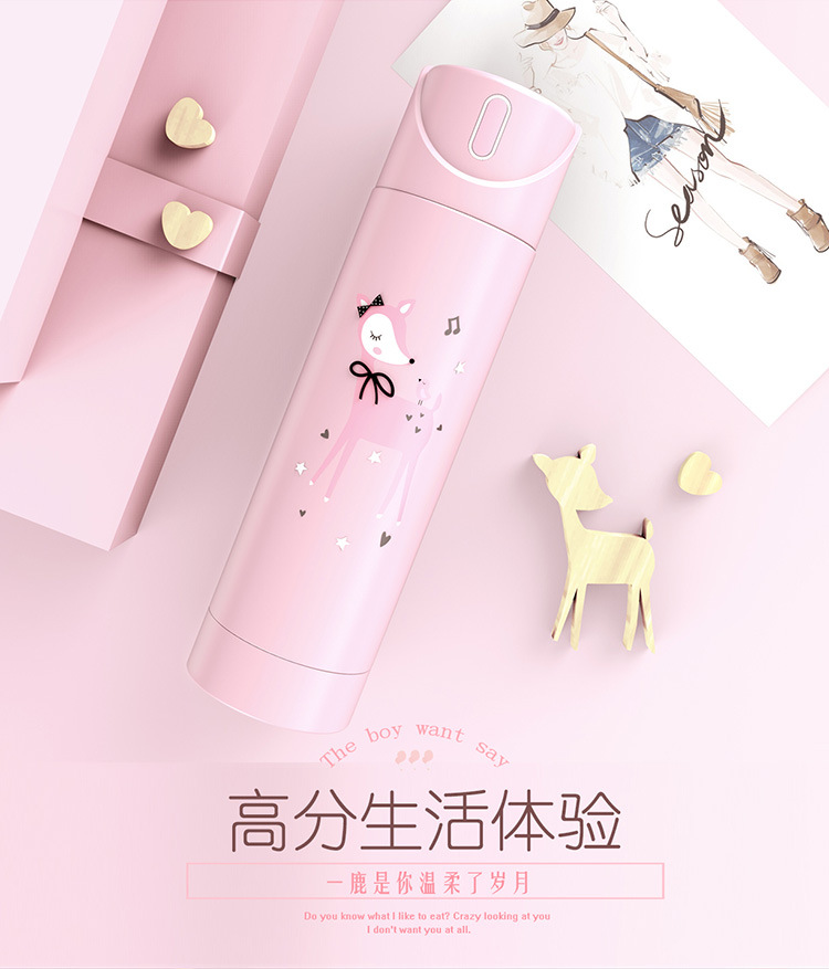 智能显温保温杯 便携小巧学生水杯 简约清新森系