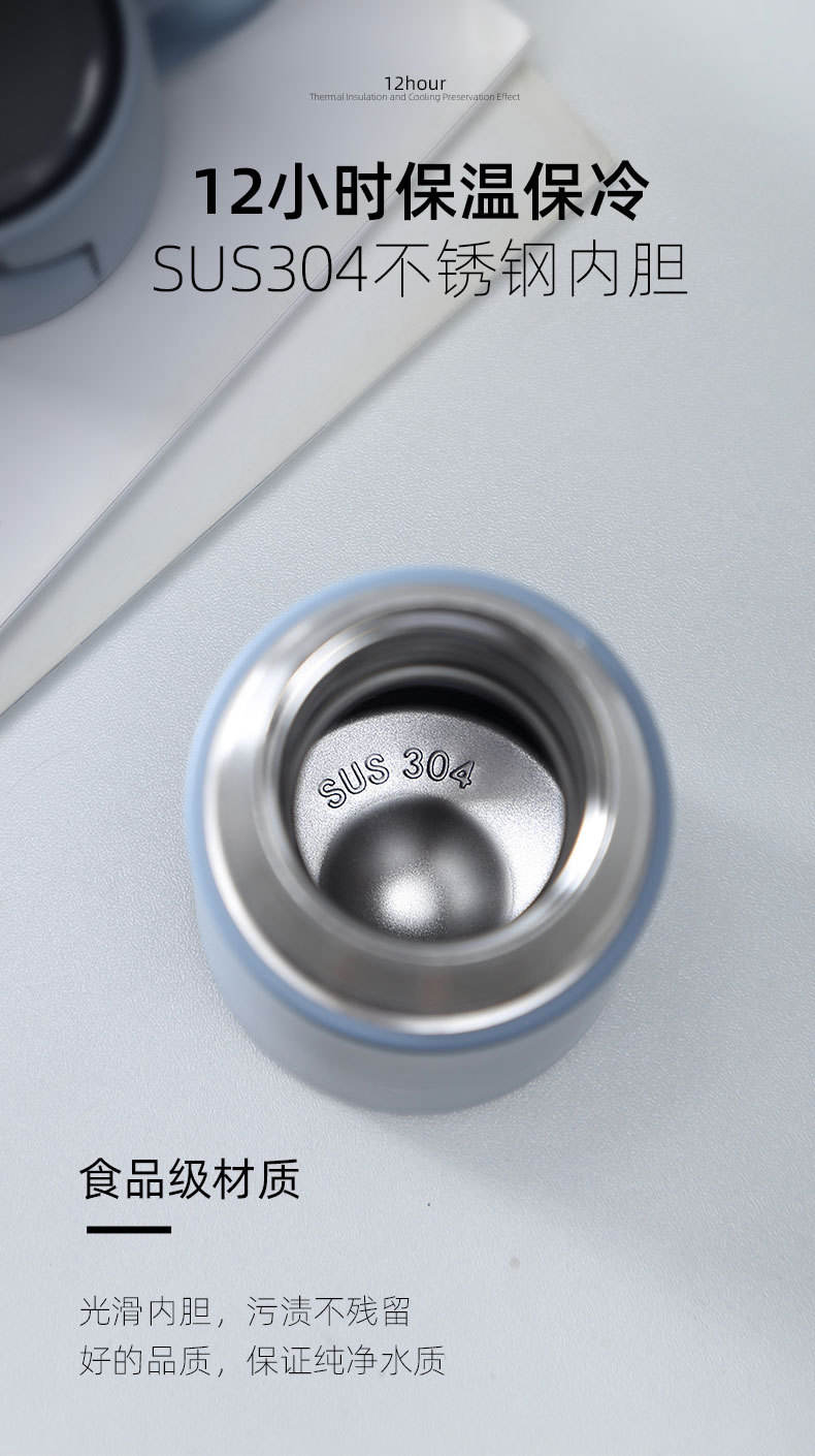 保温杯按钮杯盖 便携创意个性水杯 简约学生可爱茶杯