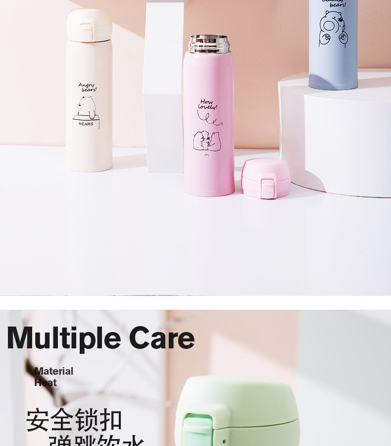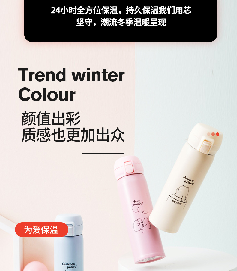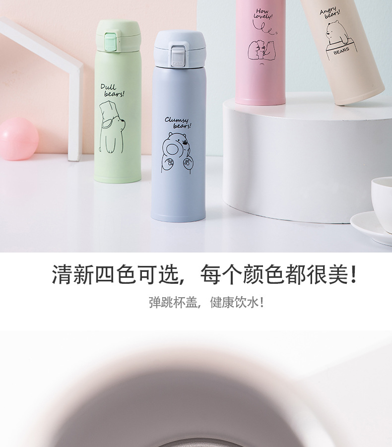 不锈钢保温杯定制 情侣款男女学生水杯 便携车载弹跳盖茶杯子礼品杯