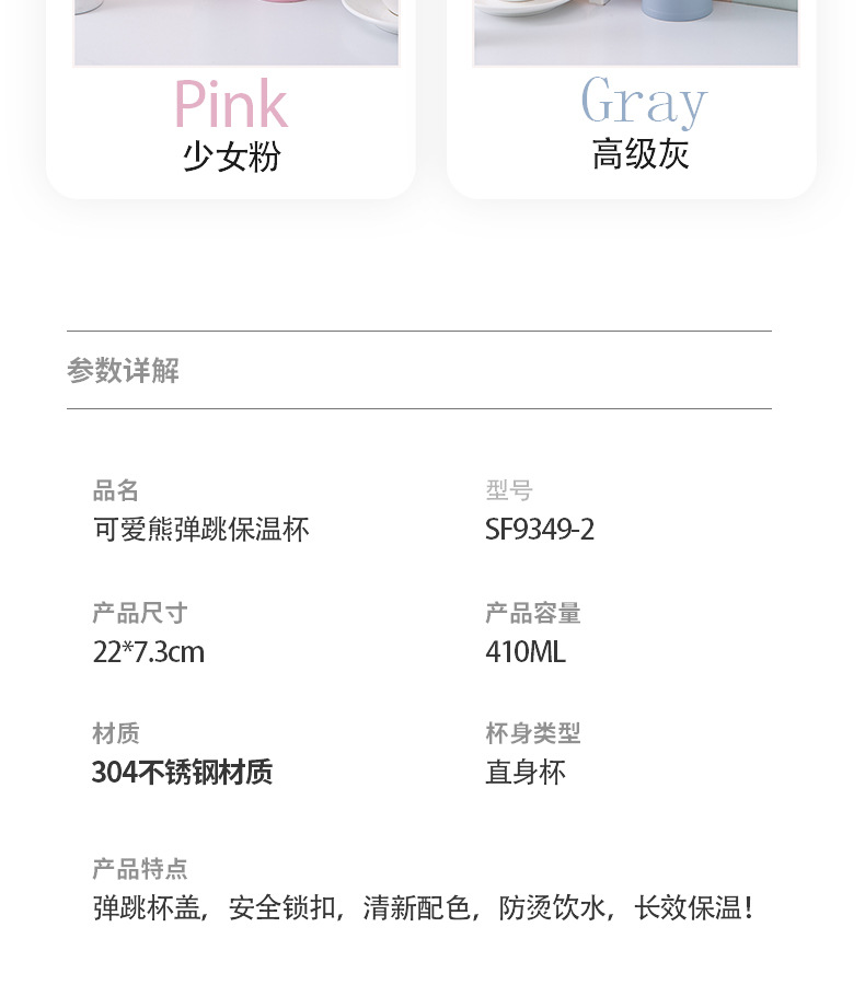 不锈钢迷你豌豆杯双层真空弹跳保温杯 户外便携