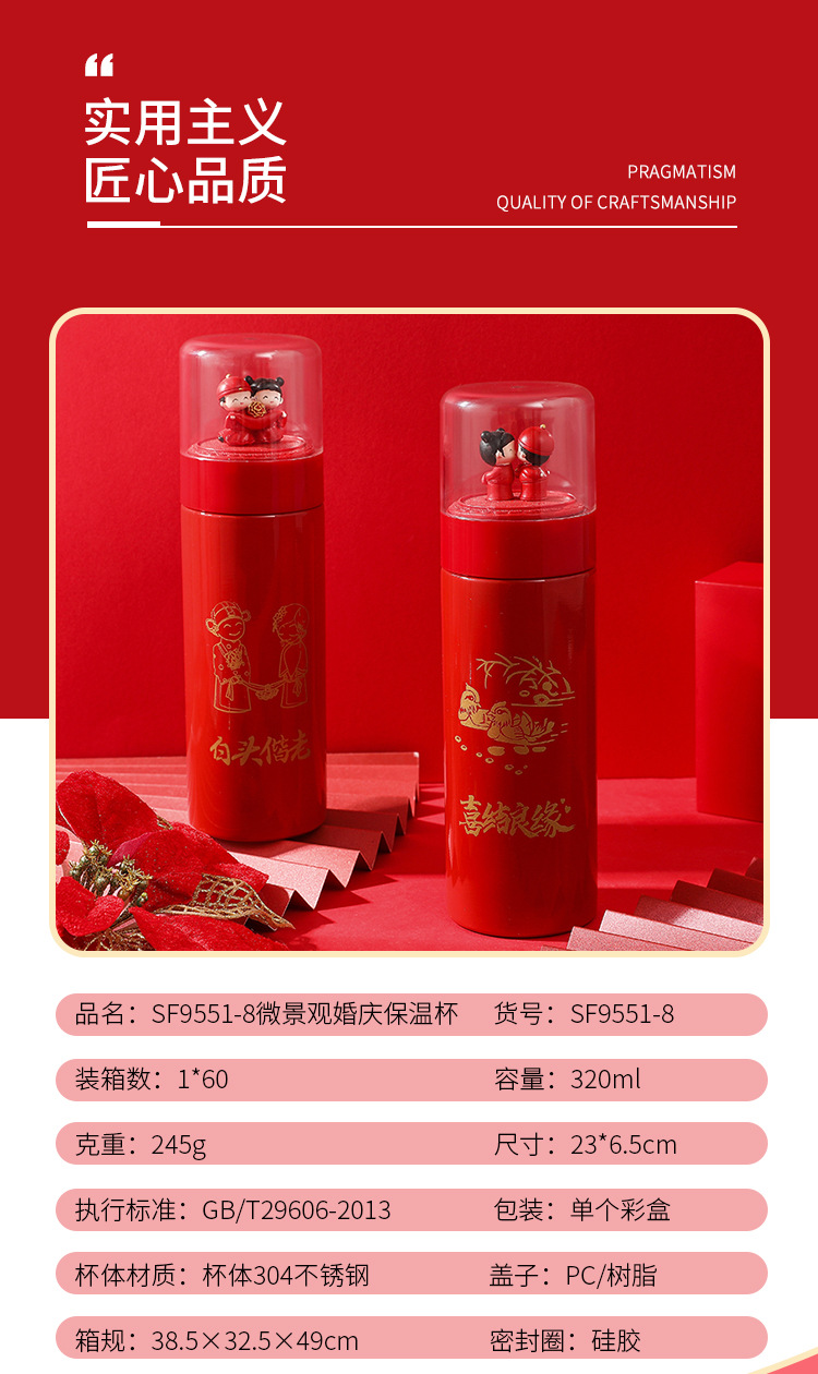 不锈钢保温杯批发 伴手礼品杯定制logo 新娘新郎情侣杯定做
