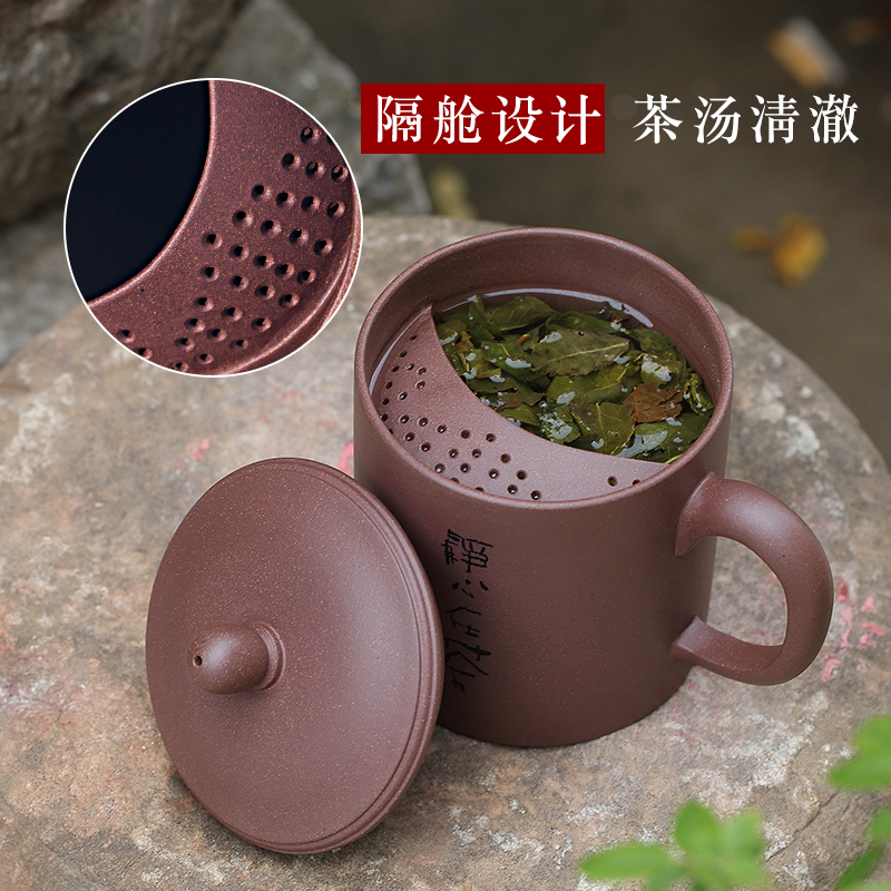 紫砂杯男士带隔仓 过滤带盖茶杯老板杯定制