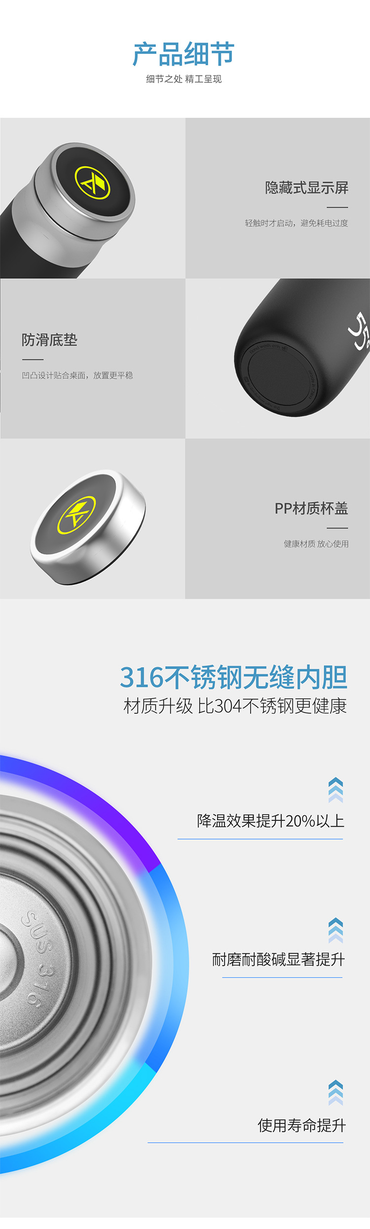 • 不锈钢304智能音乐水杯便携不锈钢保温杯