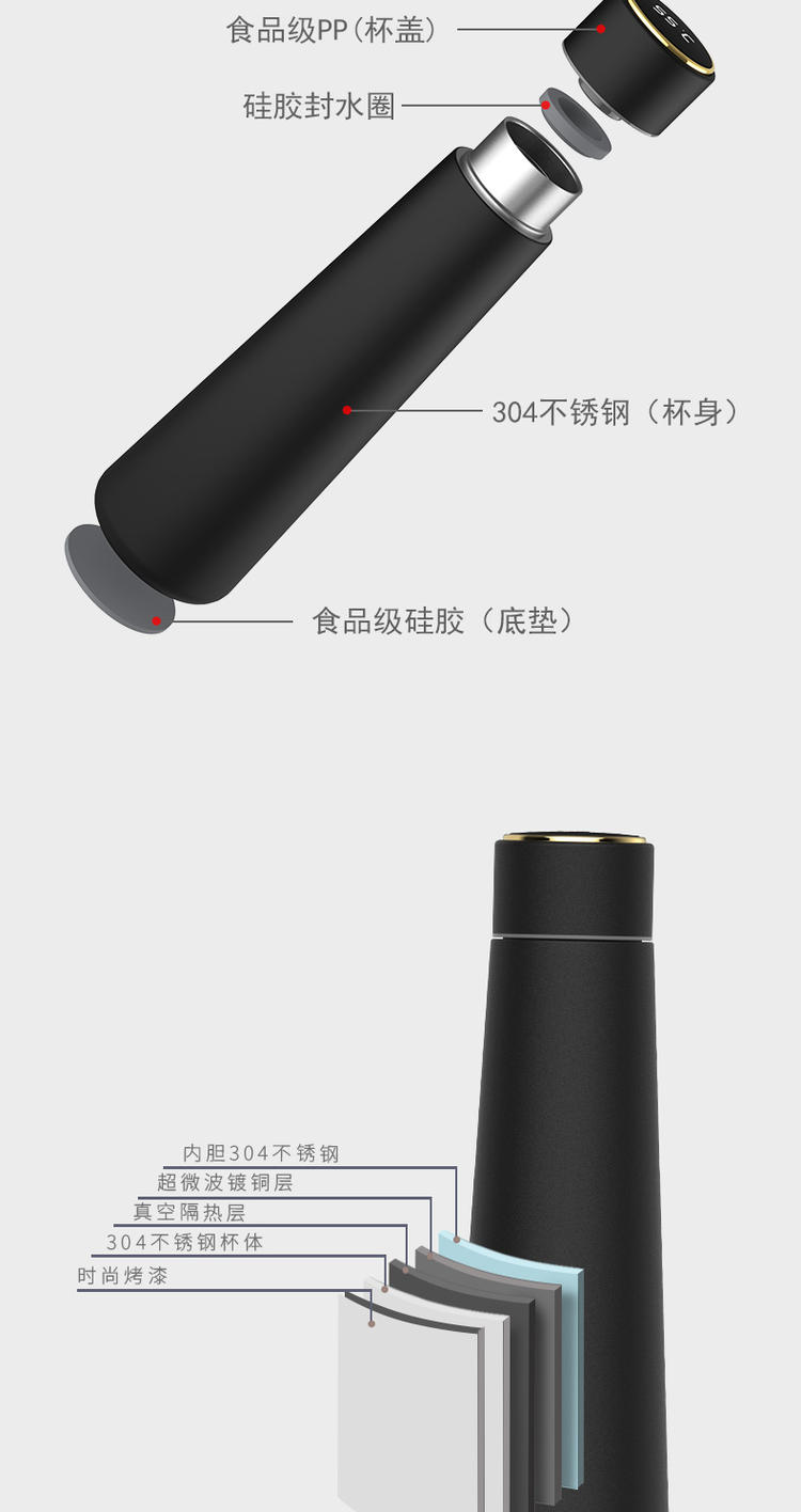 智能保温杯led数字测温 304不锈钢保温杯礼品定制 水杯礼品杯设计企业