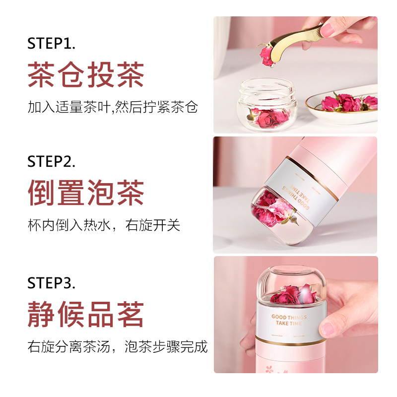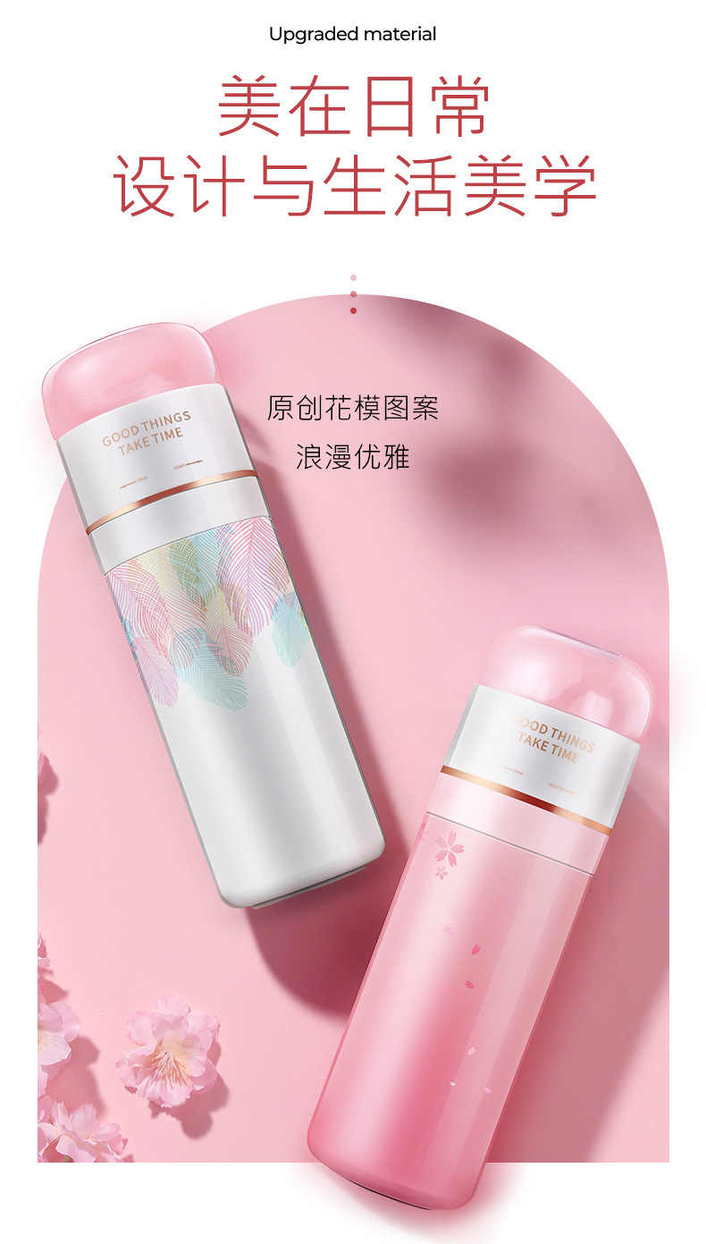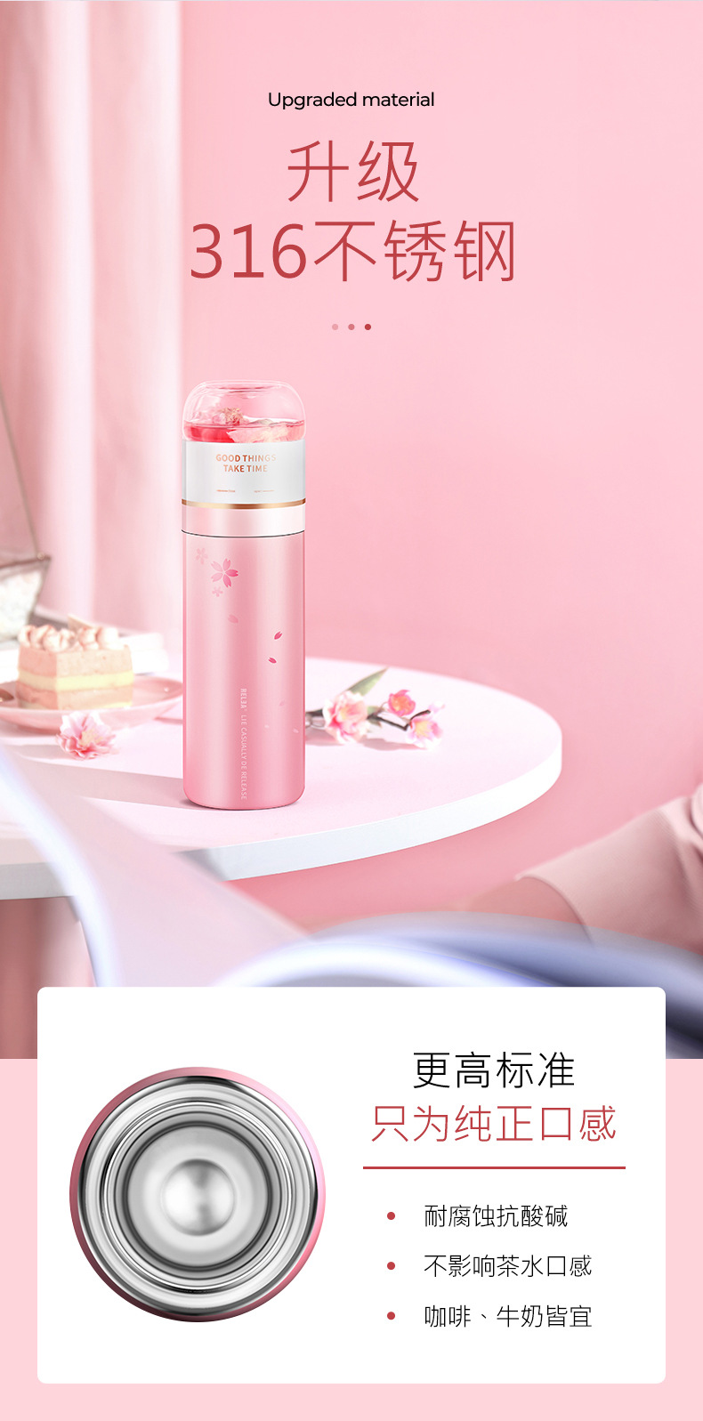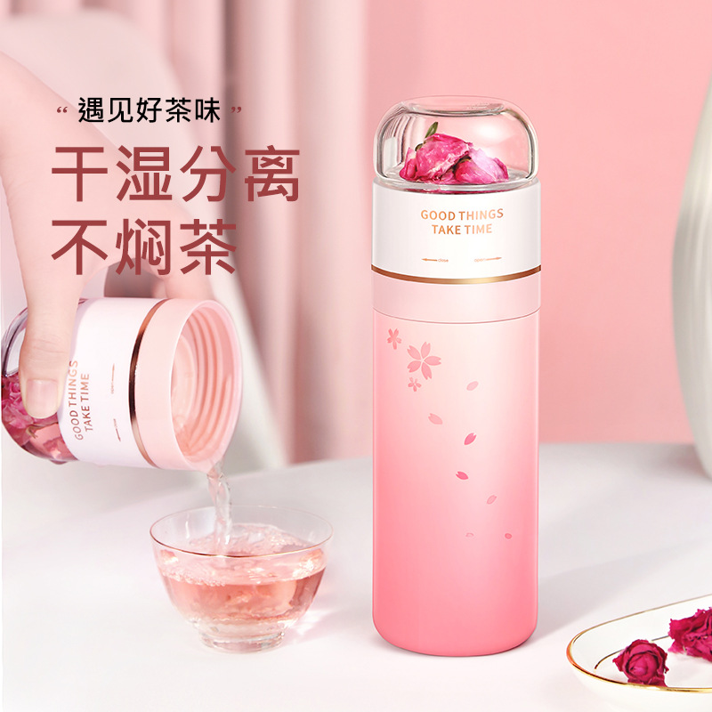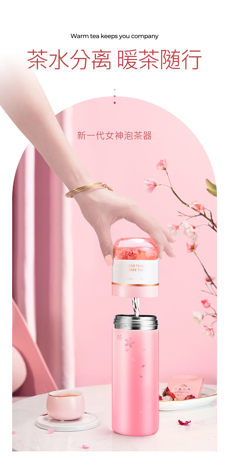 保温杯定制工厂 女士便携茶水分离泡茶水杯子 316不锈钢水杯简约ins风