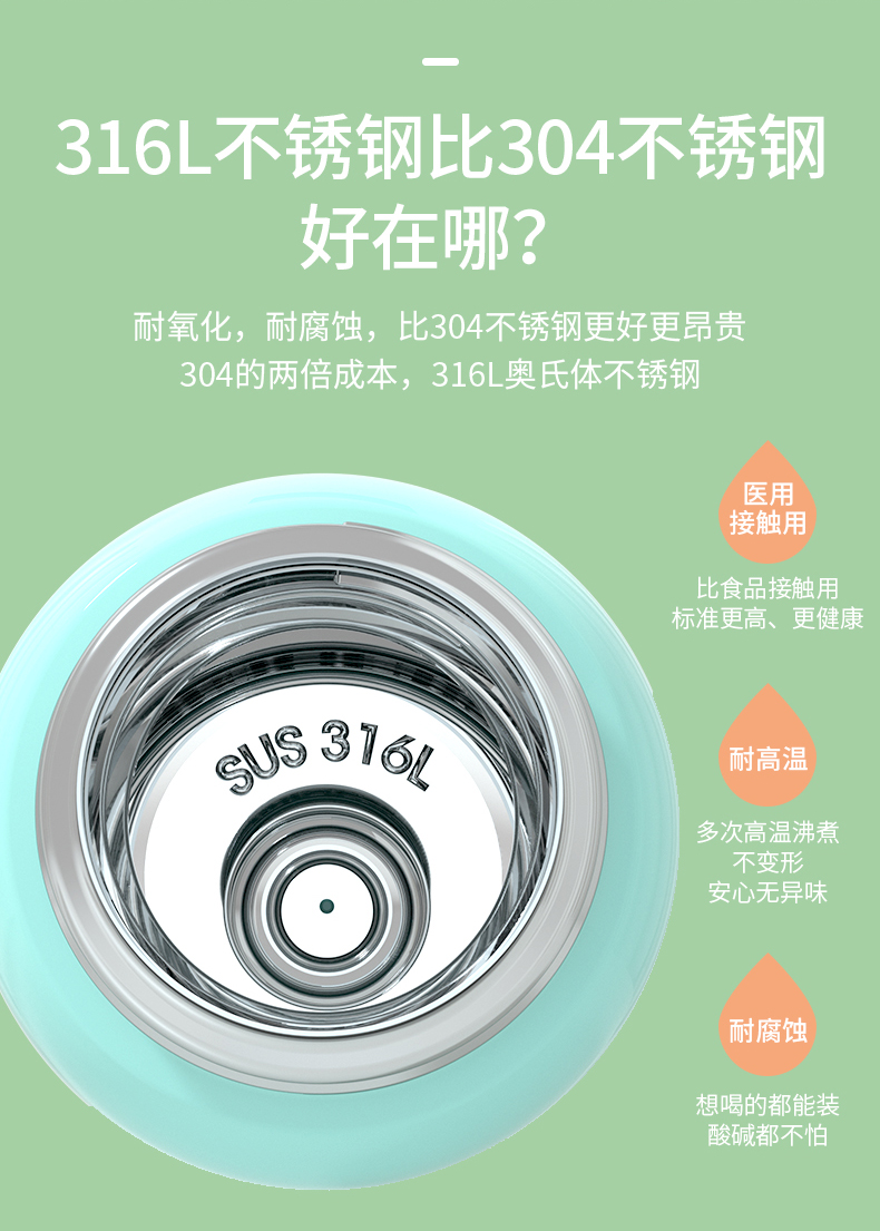 保温杯男女儿童316不锈钢大小容量杯子 便携可爱
