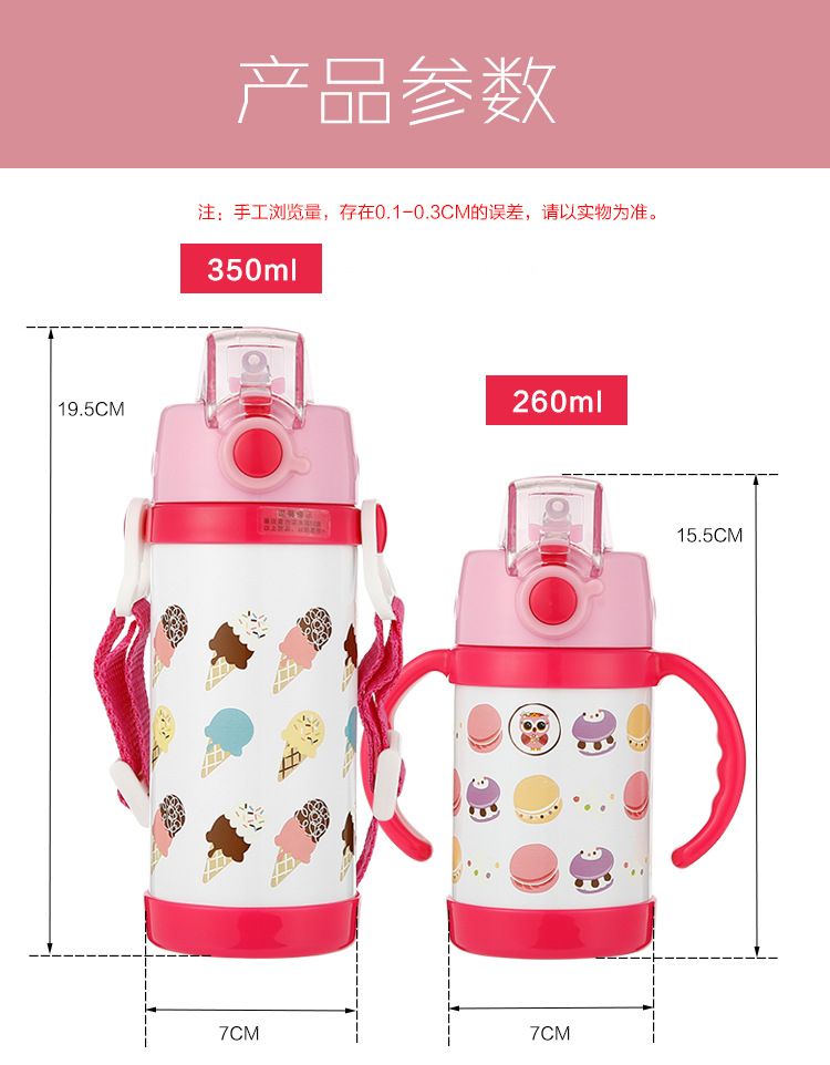 不锈钢儿童壶吸管杯 学校旅游出行旅游杯 保温杯厂家定制颜色印刷LOGO