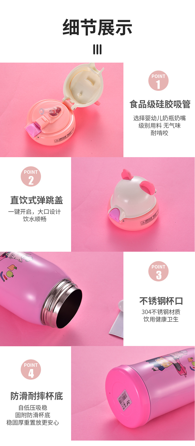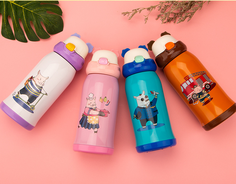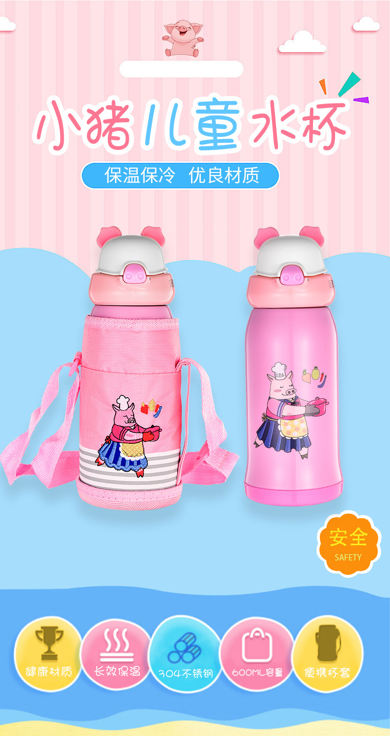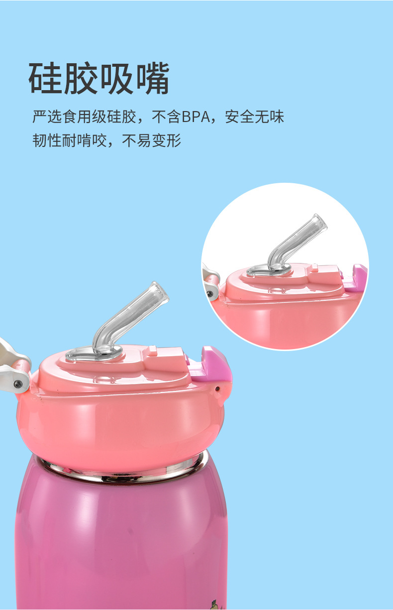 不锈钢带吸管儿童保温杯