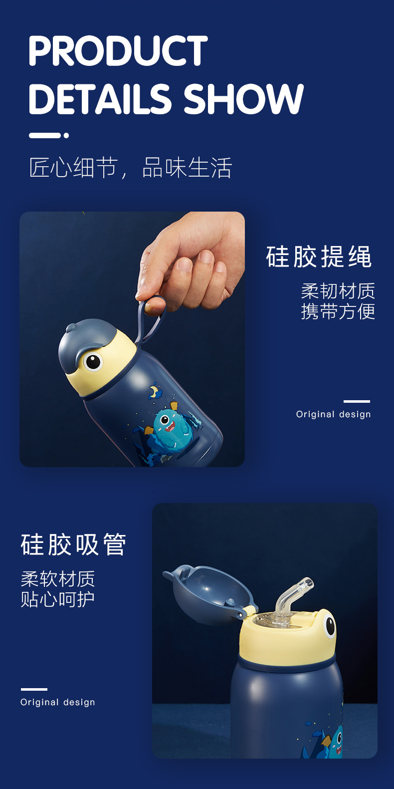 新款儿童卡通保温杯 316不锈钢学生保温壶 创意双盖带吸管水杯批发