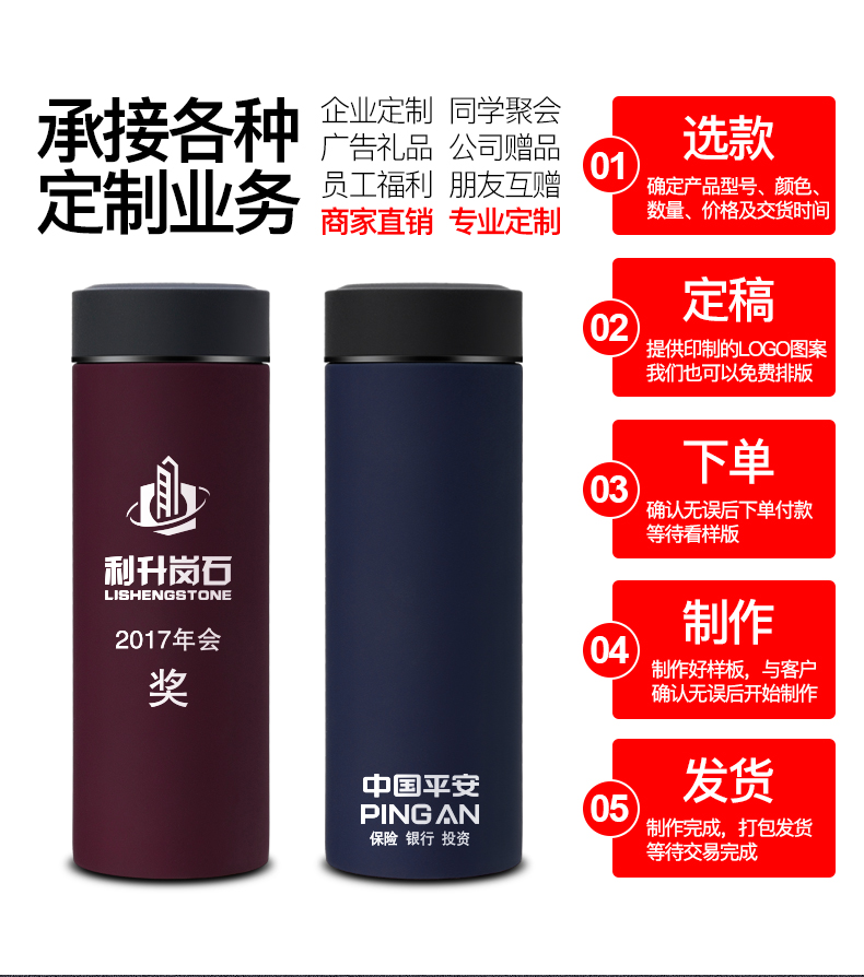 保温杯定制印logo刻字 定做员工水杯子 纪念广告促销聚会礼品开业