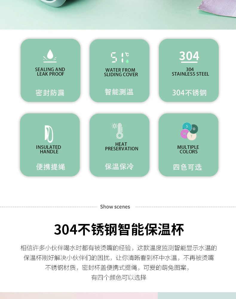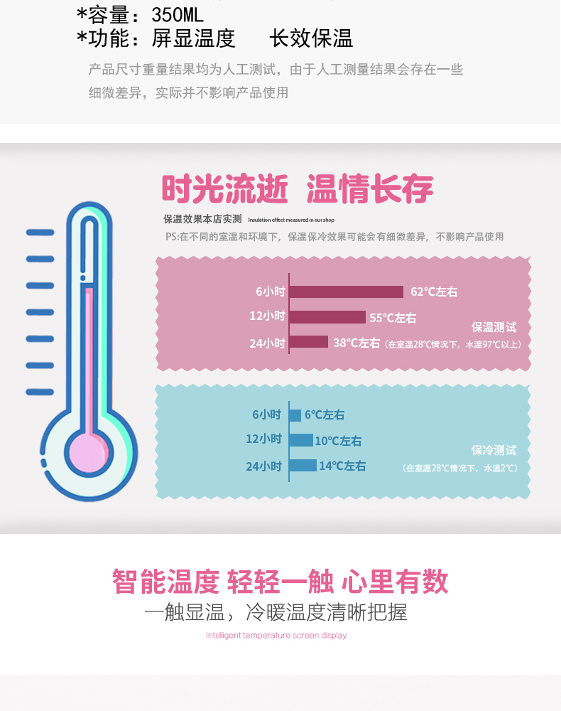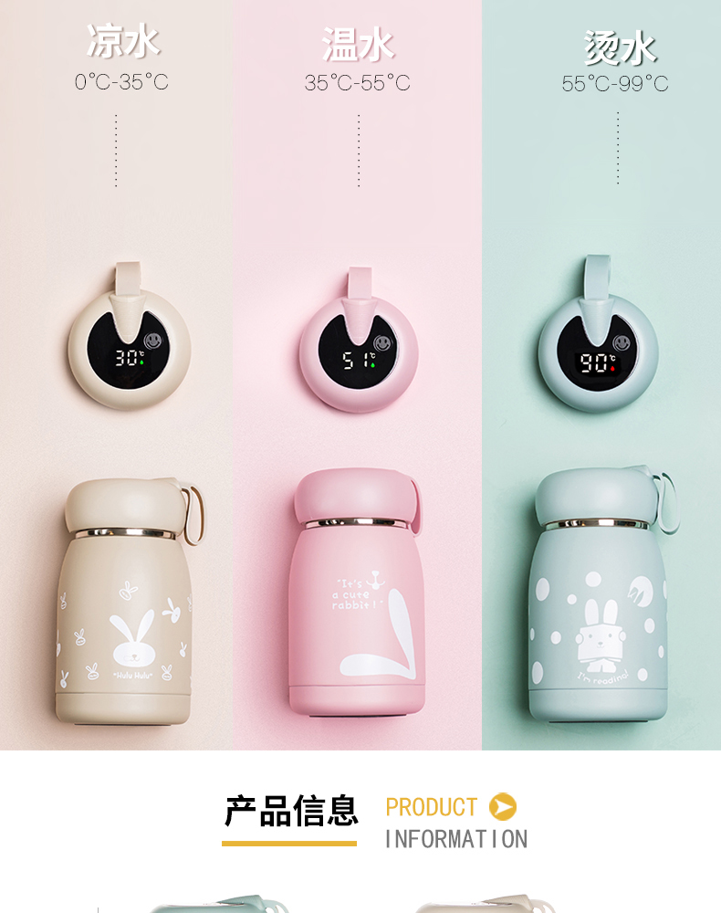 智能测温儿童保温杯定制 精致便携小巧日系儿童水杯订做