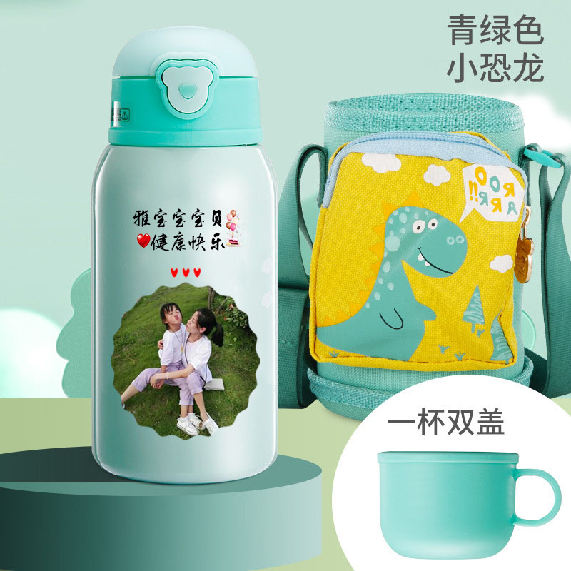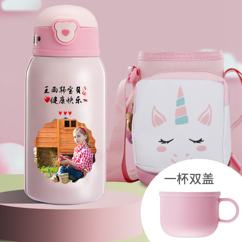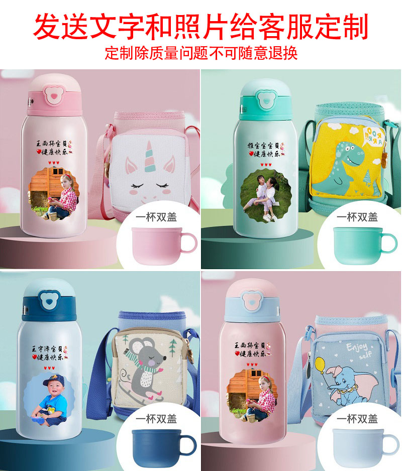 儿童保温杯小学生定制 儿童防摔幼儿园水杯带吸管两用照片刻字diy