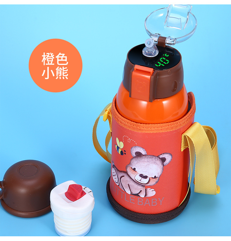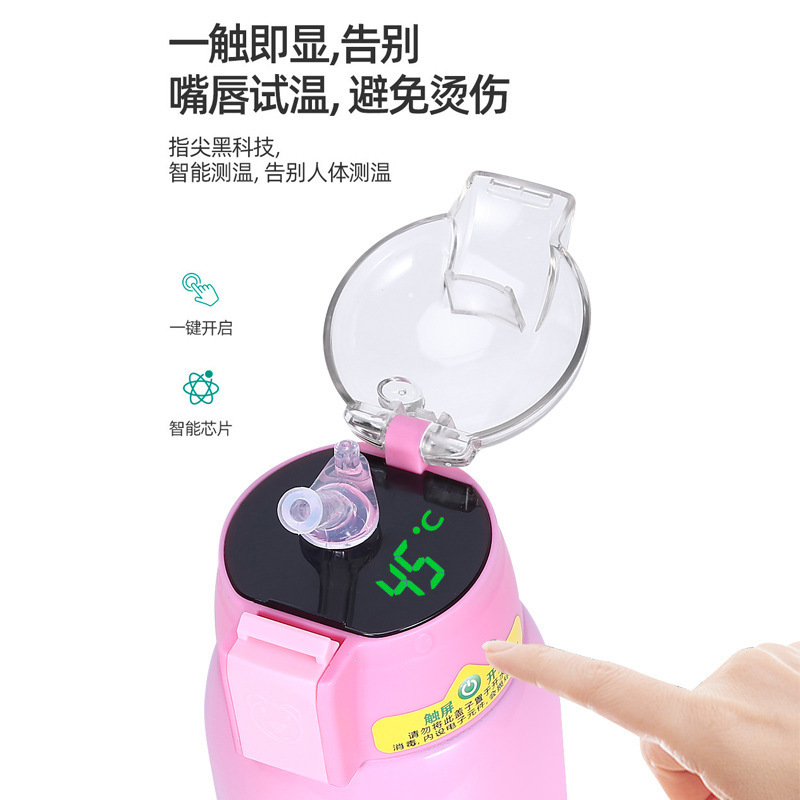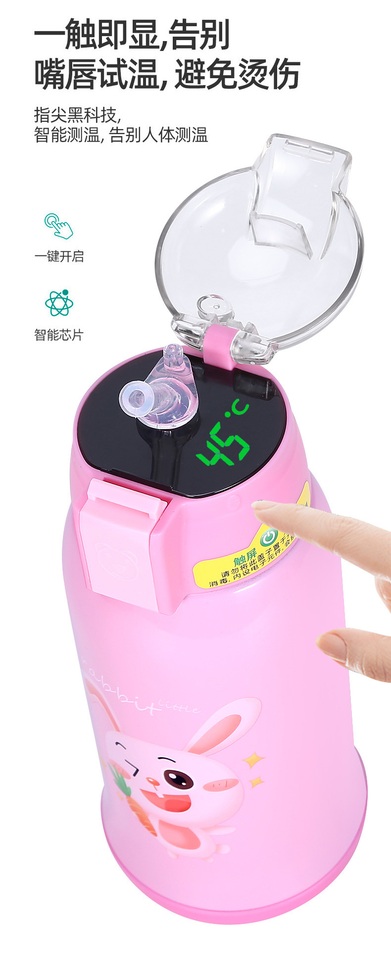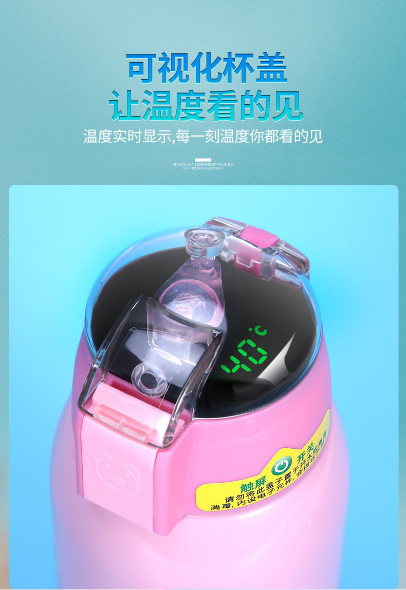 不锈钢保温杯定制 便携带吸管儿童壶 创意卡通智能感应温度水杯定制logo