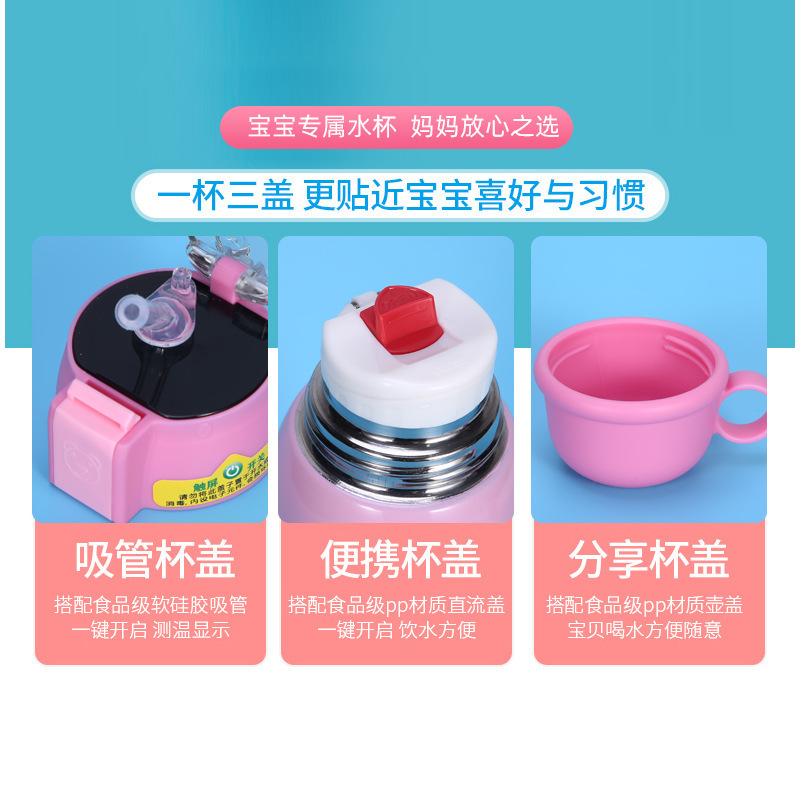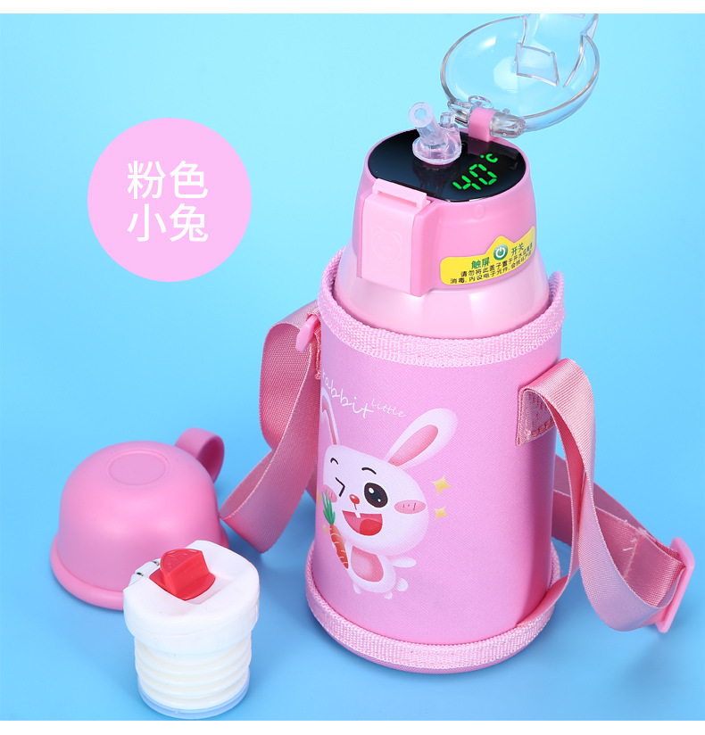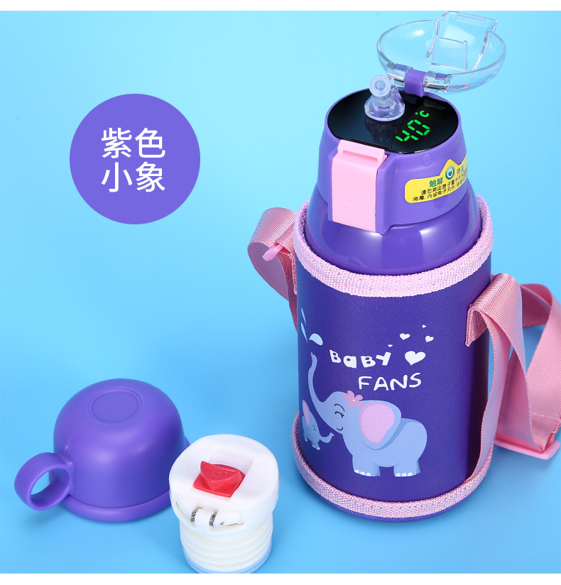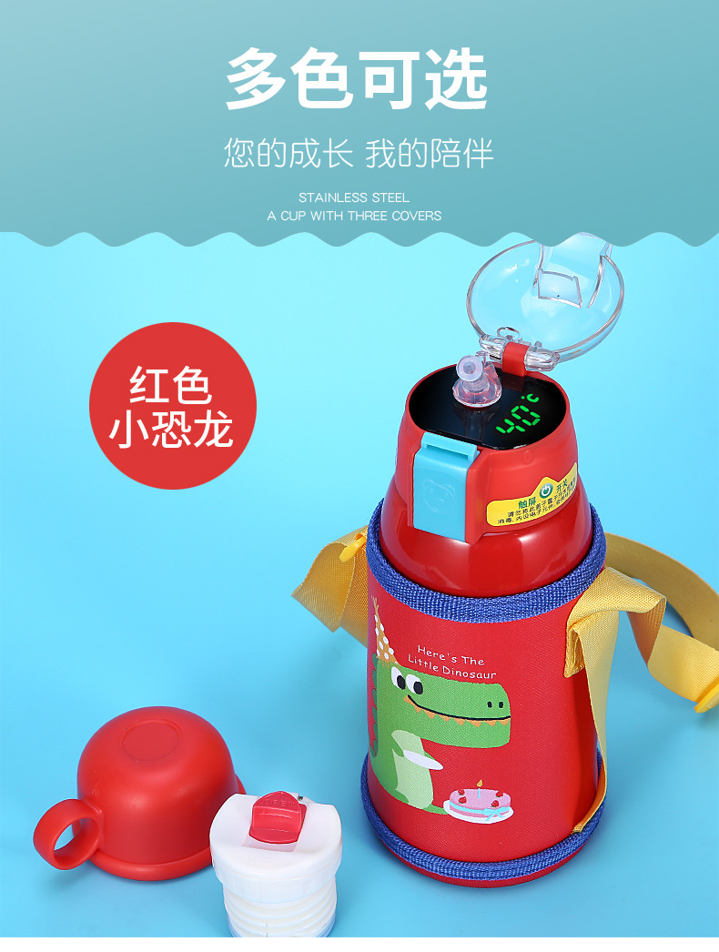 不锈钢保温杯定制 便携带吸管儿童壶 创意卡通智能感应温度水杯定制logo