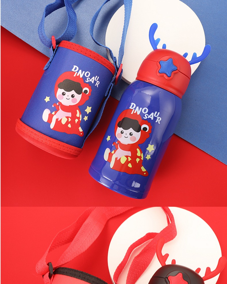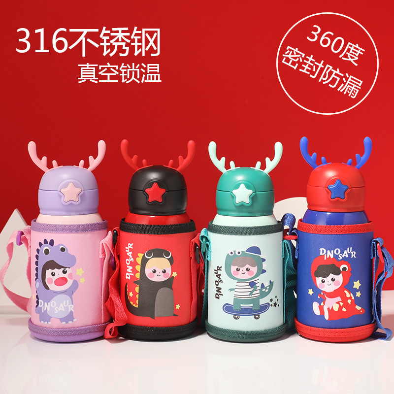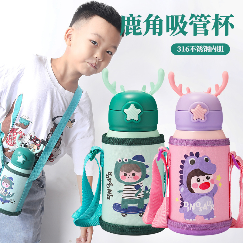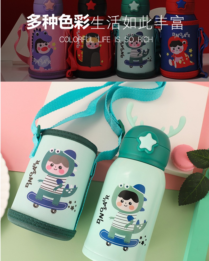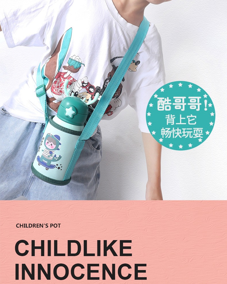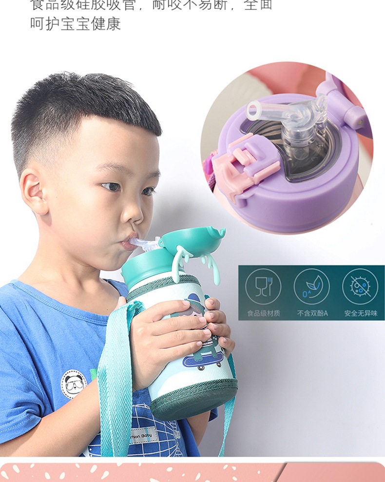 卡通儿童壶 316不锈钢儿童保温杯 带吸管弹跳杯子学生水杯带提绳