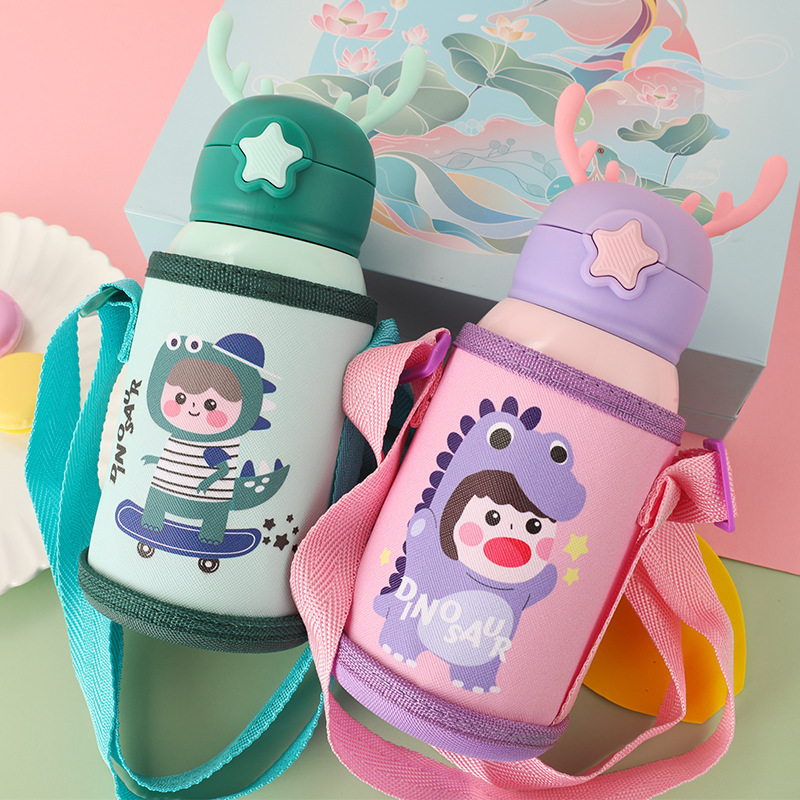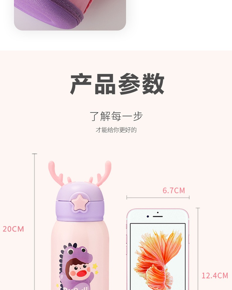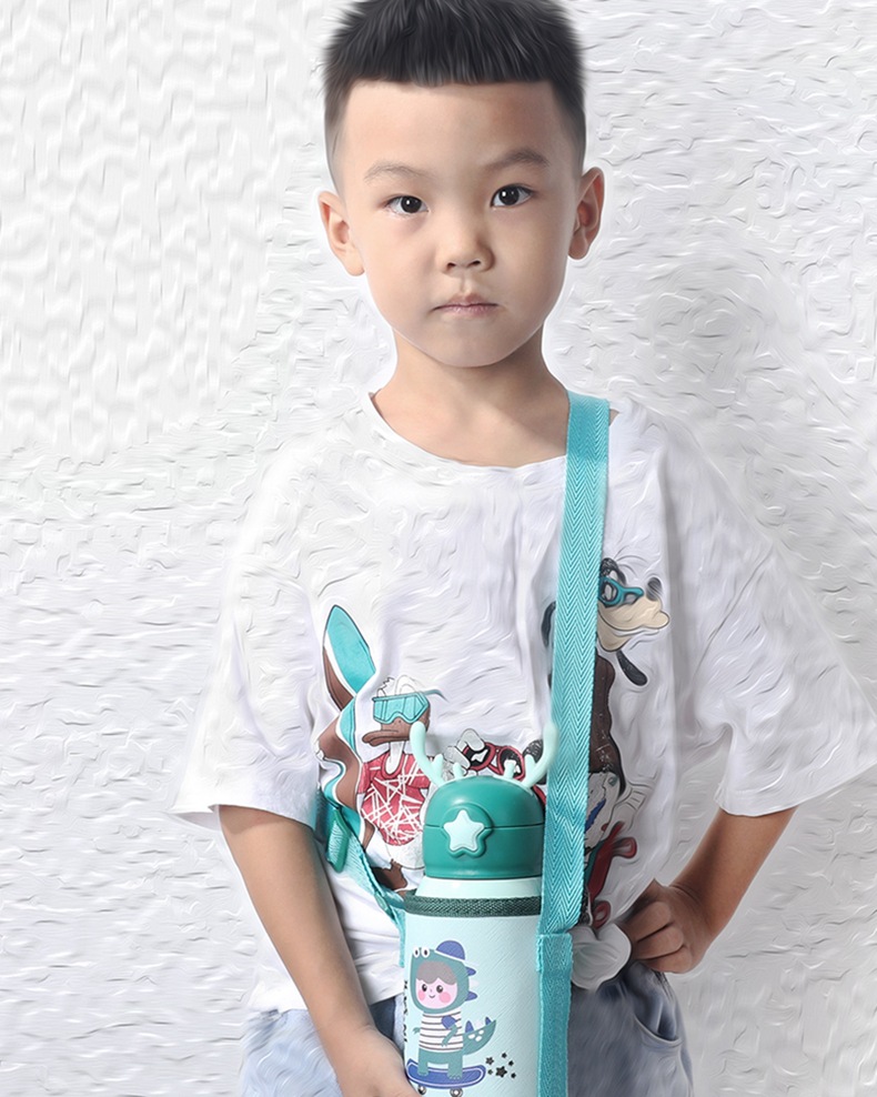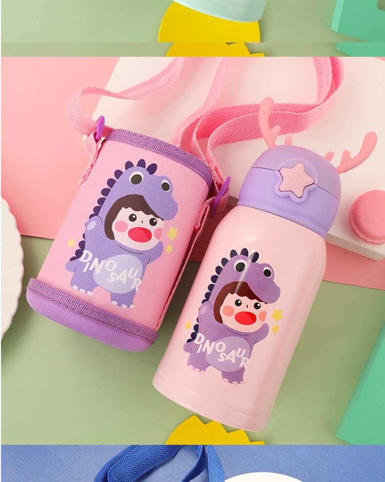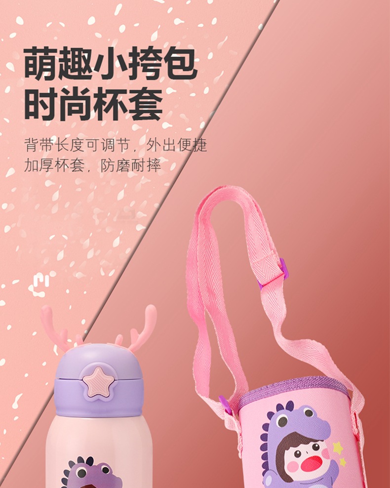 卡通儿童壶 316不锈钢儿童保温杯 带吸管弹跳杯子学生水杯带提绳