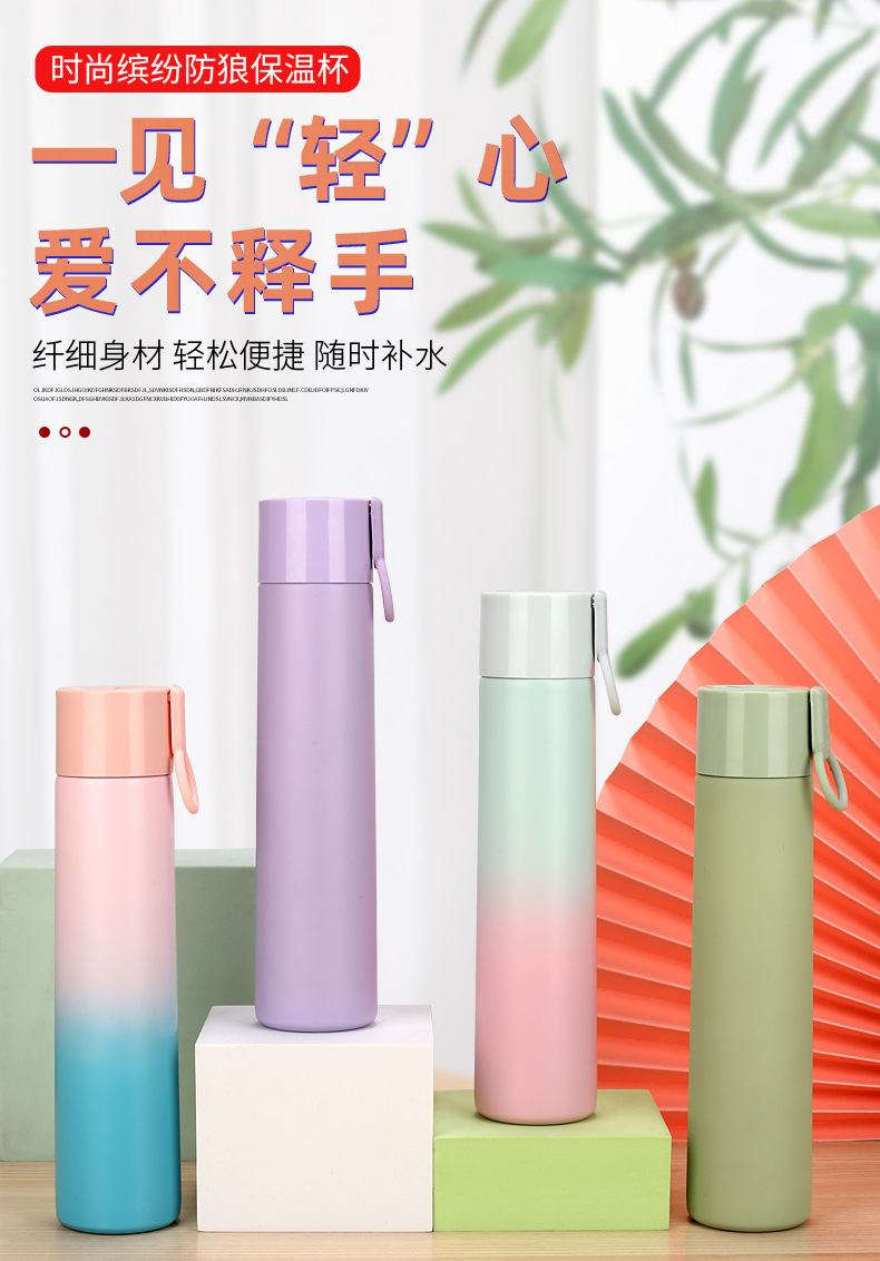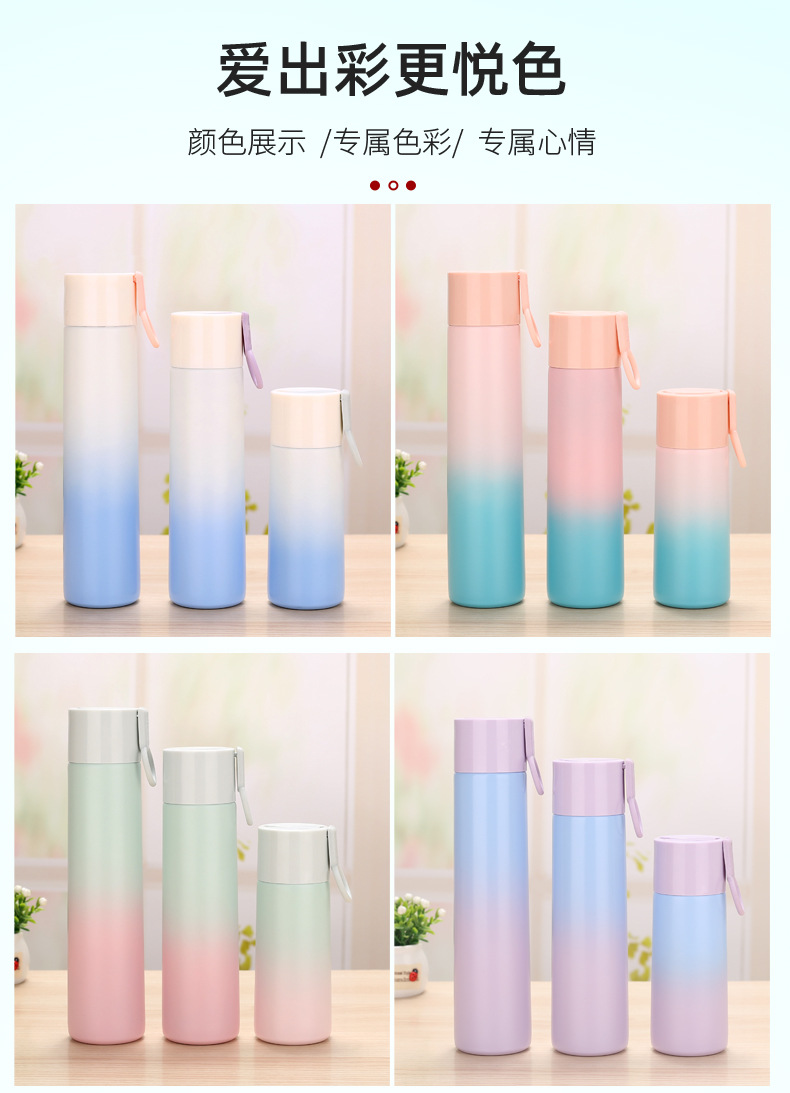 新款创意吊带防狼杯定制 女士时尚小巧不锈钢真空水杯渐变色保温杯定制