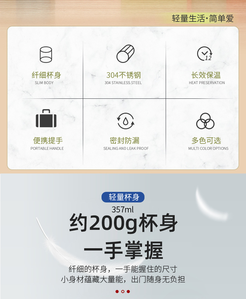 纯钛保温杯女性 便携简约可爱女士高档杯子200