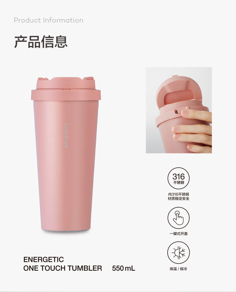 乐扣乐扣遇见元气保温杯 简约便携咖啡杯子 不锈钢水杯定制