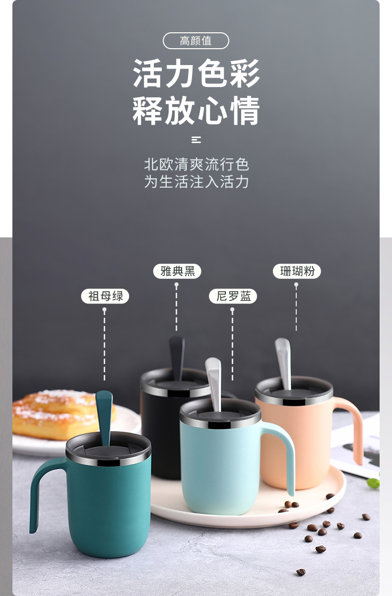 304不锈钢带盖勺创意个性杯子 可爱喝水杯咖啡杯