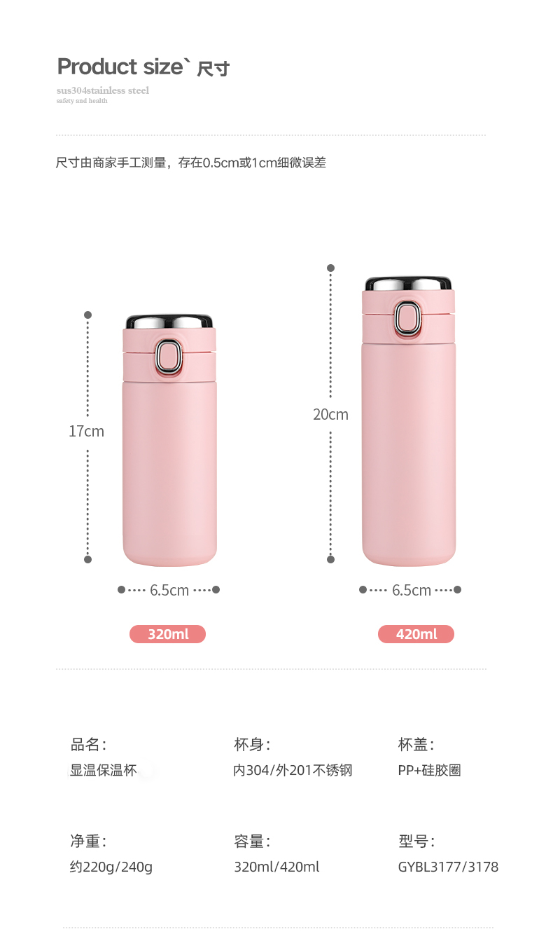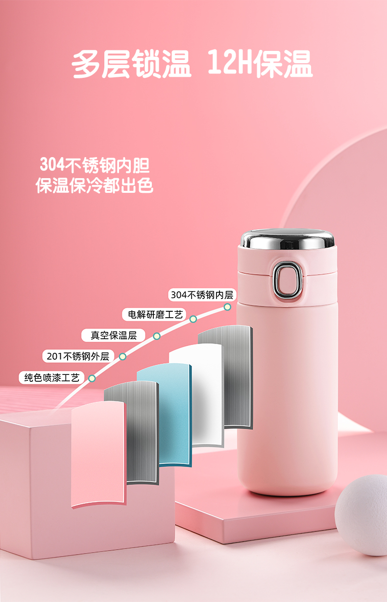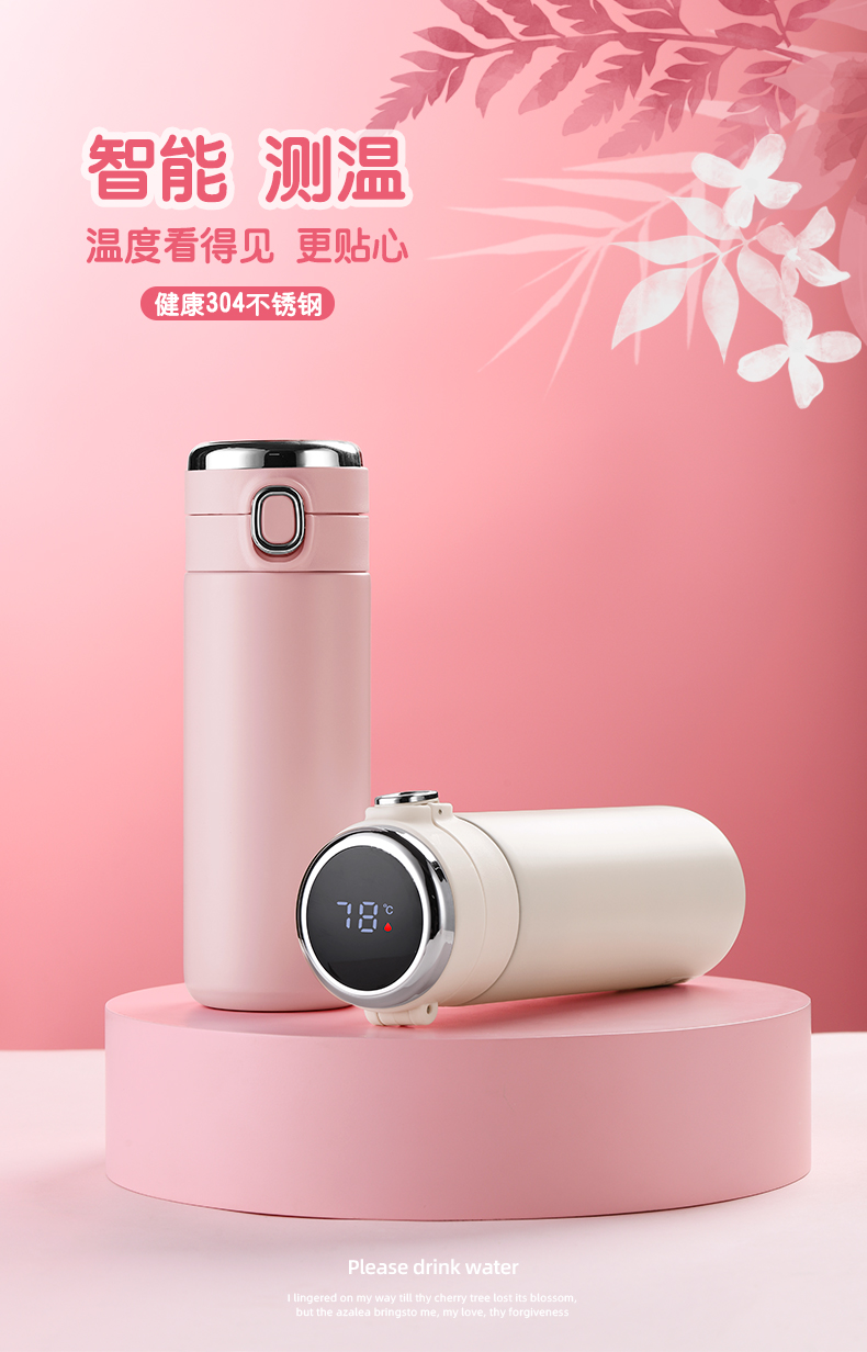智能显温保温杯 便携小巧学生水杯 简约清新森系