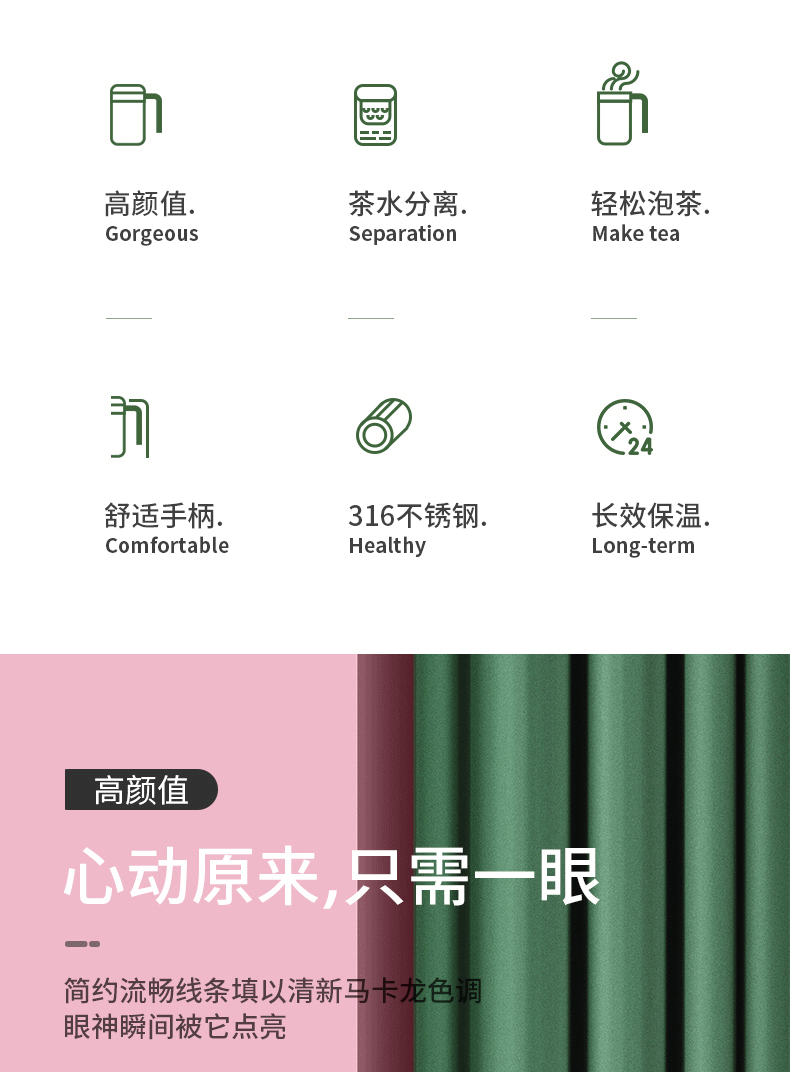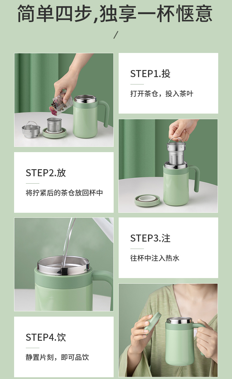 办公室保温杯男女 不锈钢便携定制泡茶杯子带手柄