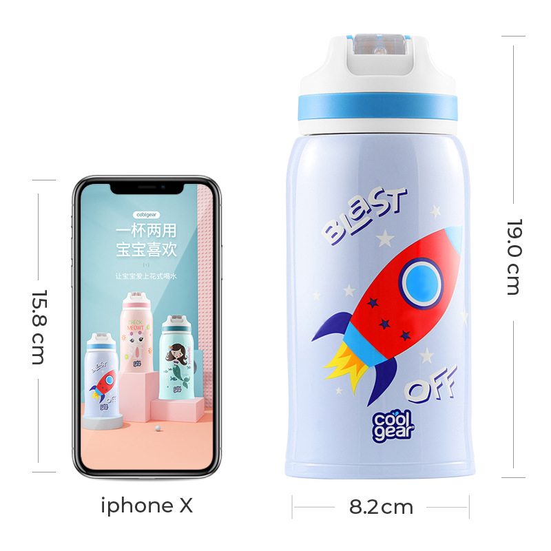 coolgear儿童保温杯定制 学生幼儿园吸管杯宝宝防摔便携水壶316不锈钢