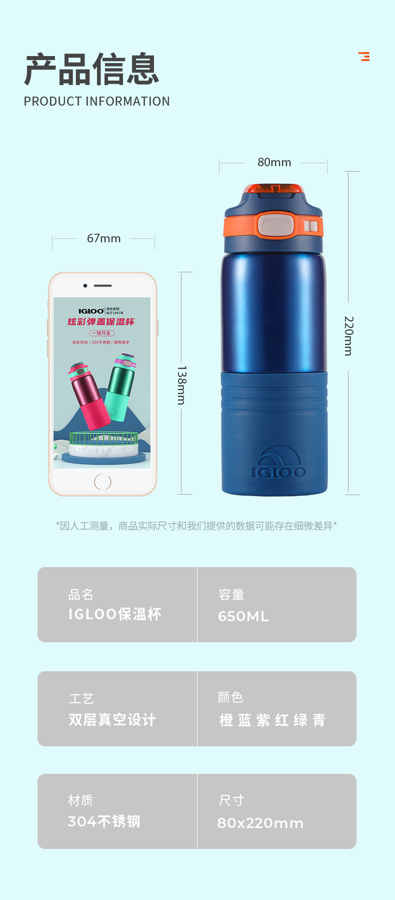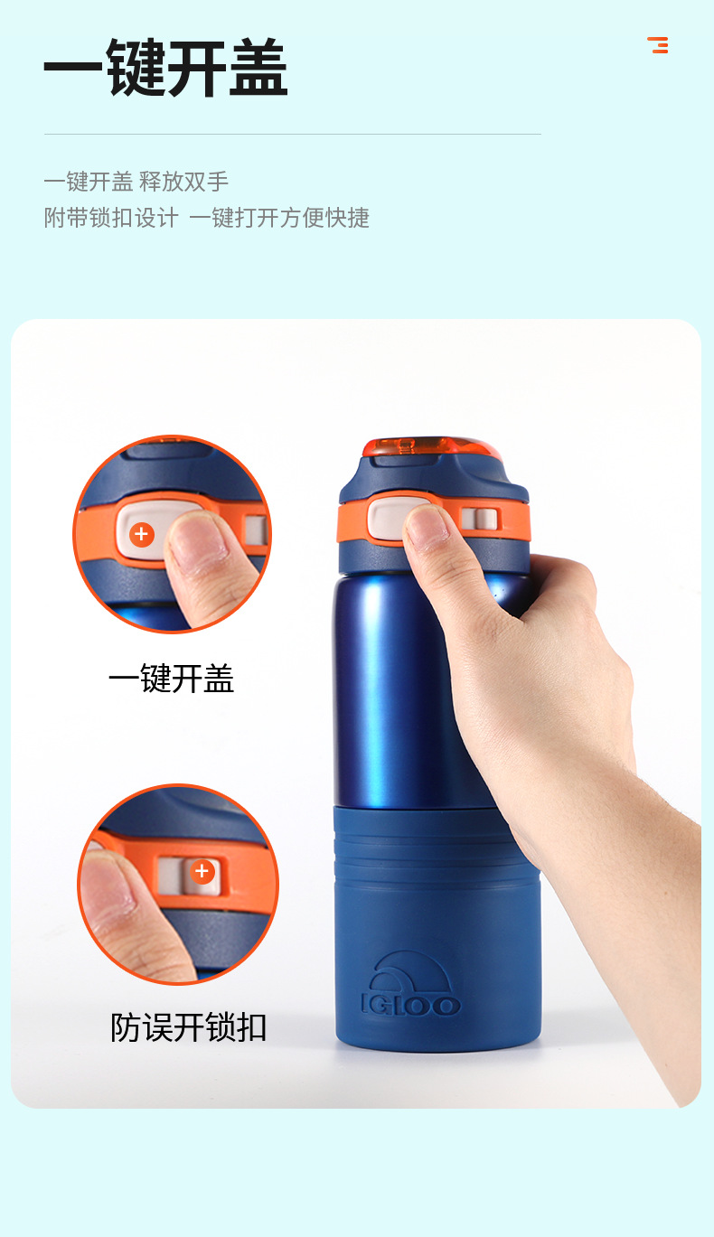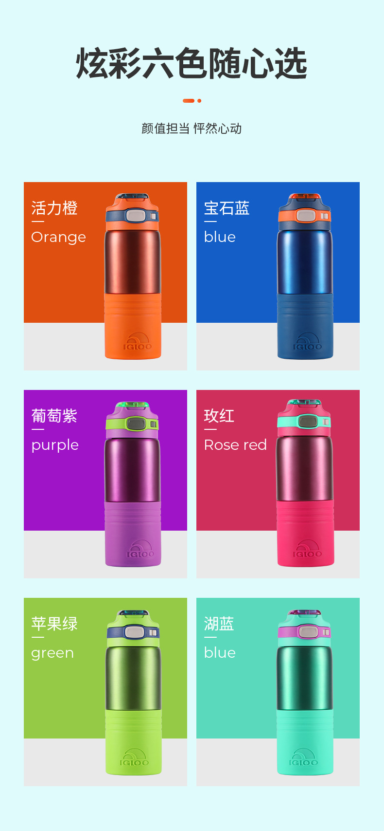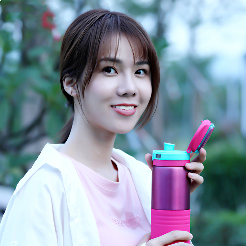 易酷乐弹盖保温杯 成人水杯便携杯子简约炫彩保温杯