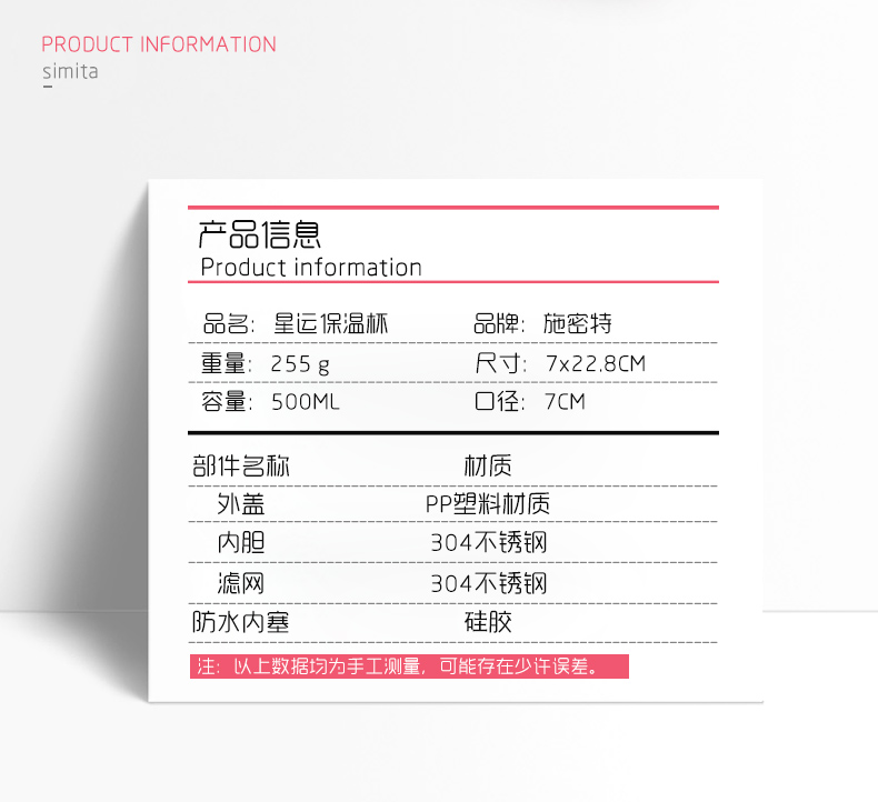Simita保温杯男女 便携学生韩版304不锈钢水杯 泡茶