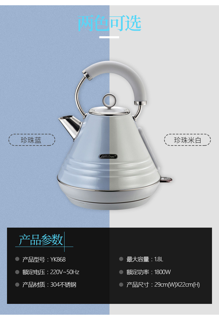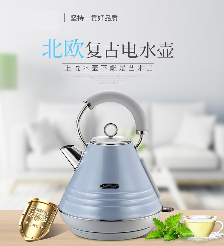 北欧新款复古电热水壶 304不锈钢烧水壶家用水壶自动断电