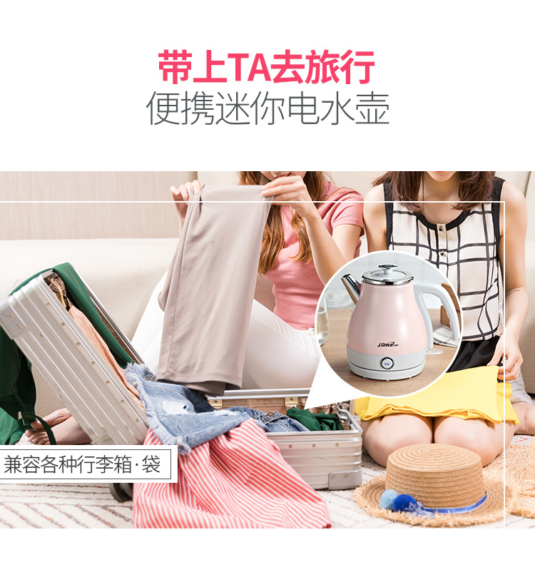 旅行便携烧水壶 家用304不锈钢小容量电水壶一键保温迷你