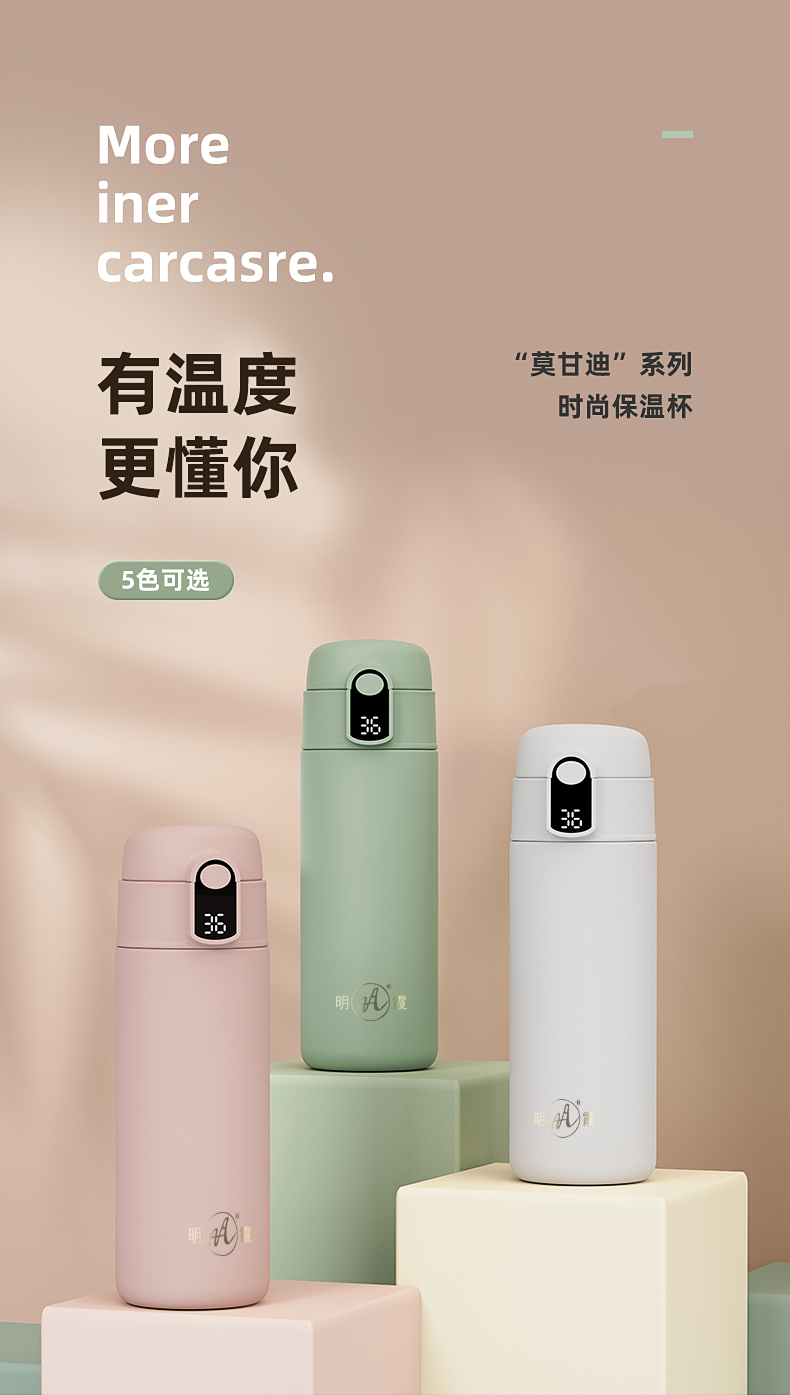 智能显温保温杯 便携小巧学生水杯 简约清新森系