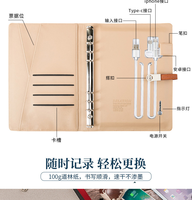 公司年会礼物 多功能电源本可充电记事本套装印制logo保温杯套装