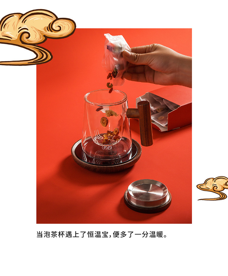 简约恒温宝茶杯 加热底座保温水杯子套装送女友新年礼物盒